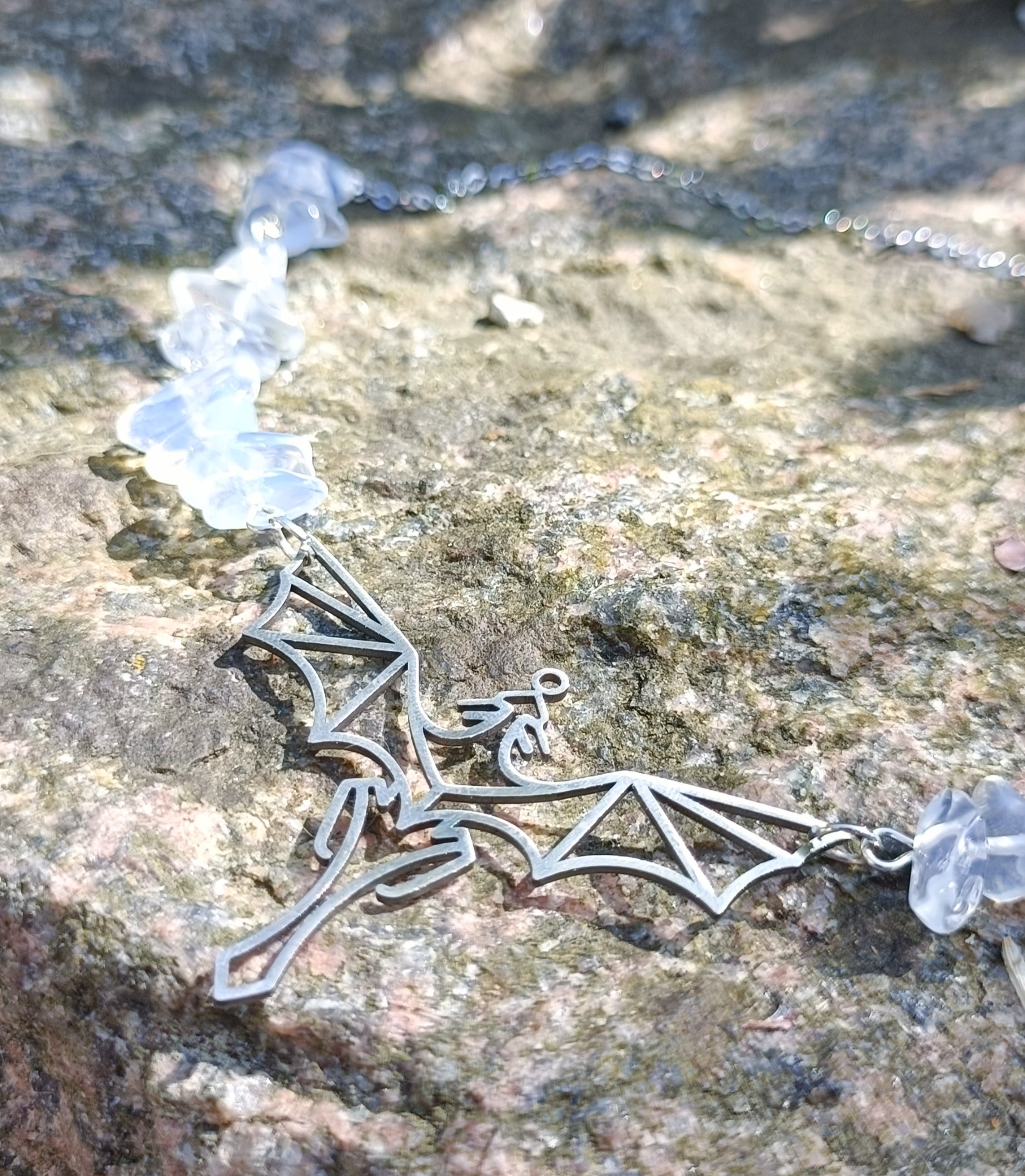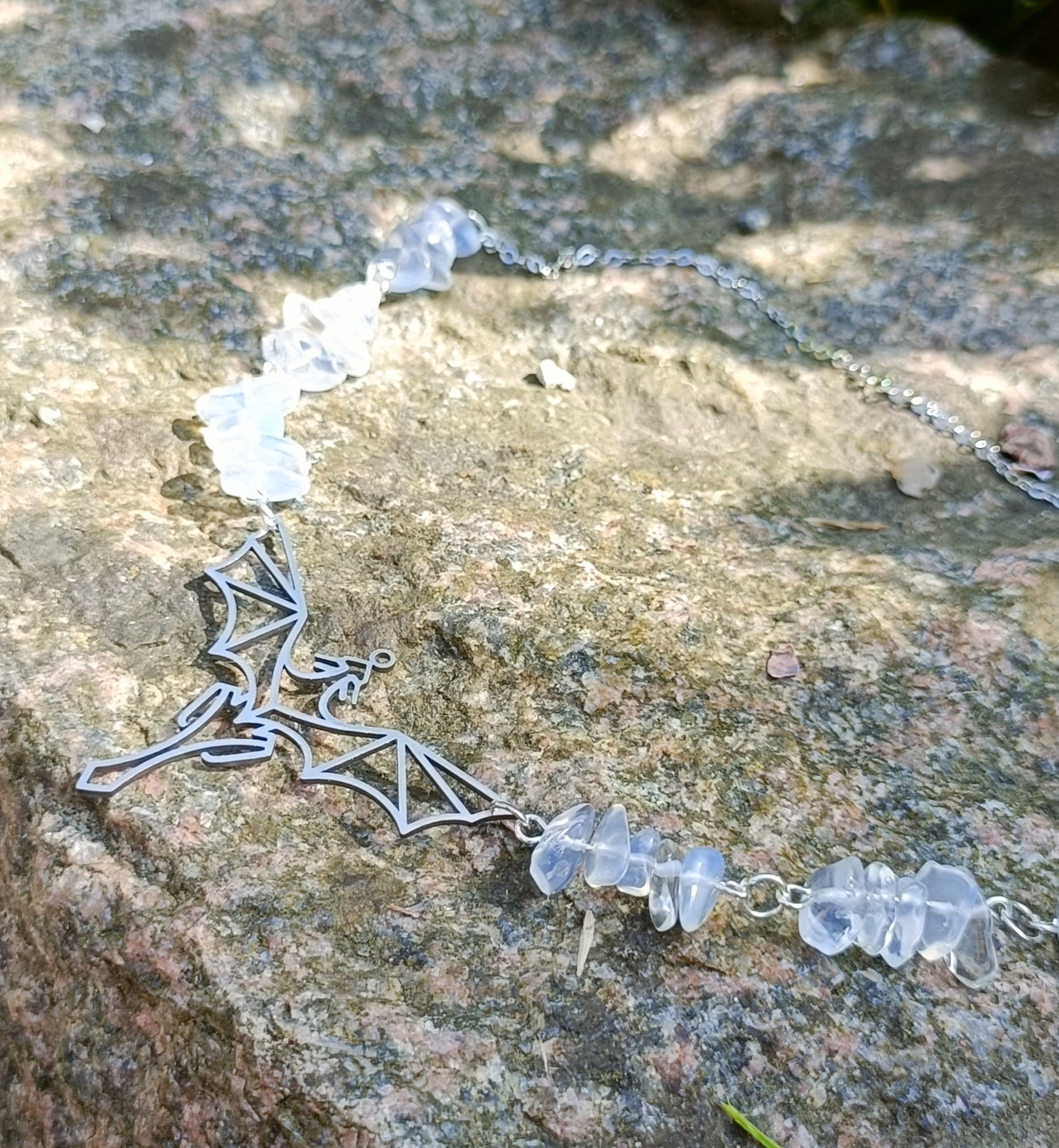 Mystical and luminous, the Adularia Dragon Necklace captures the ethereal glow of moonlight in a wearable piece of fantasy and strength. Featuring a hand-polished Adularia (Moonstone Feldspar) gemstone embraced by a detailed stainless steel dragon, this pendant symbolizes transformation, protection, and inner magic.