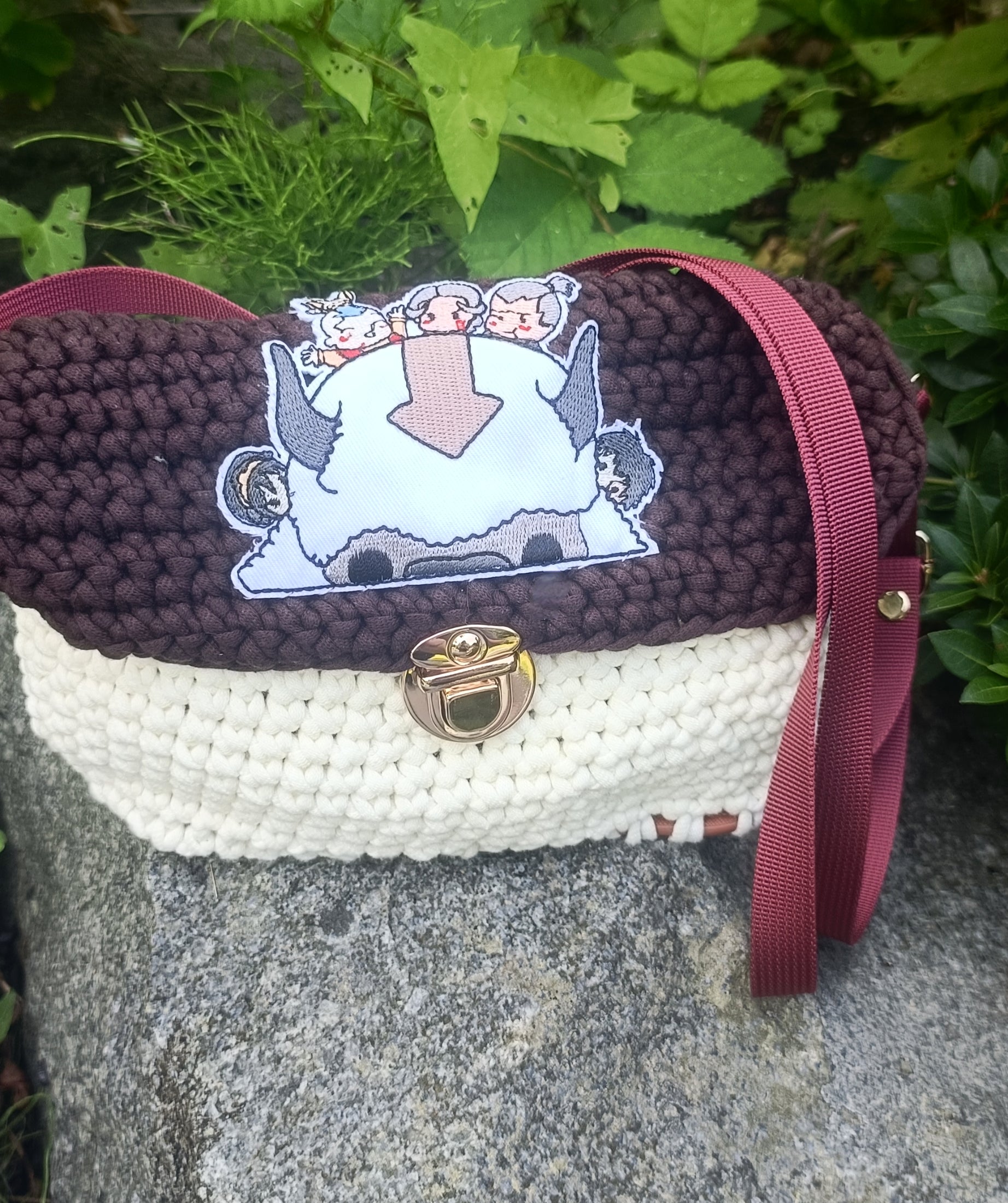 Yip yip! Carry your essentials in style with this handmade Appa purse, inspired by the beloved sky bison from Avatar: The Last Airbender. Made from durable cotton yarn, it features an embroidered Appa patch that adds texture, charm, and a touch of fandom magic. Perfect for anime lovers and collectors of unique, artisan-crafted accessories.