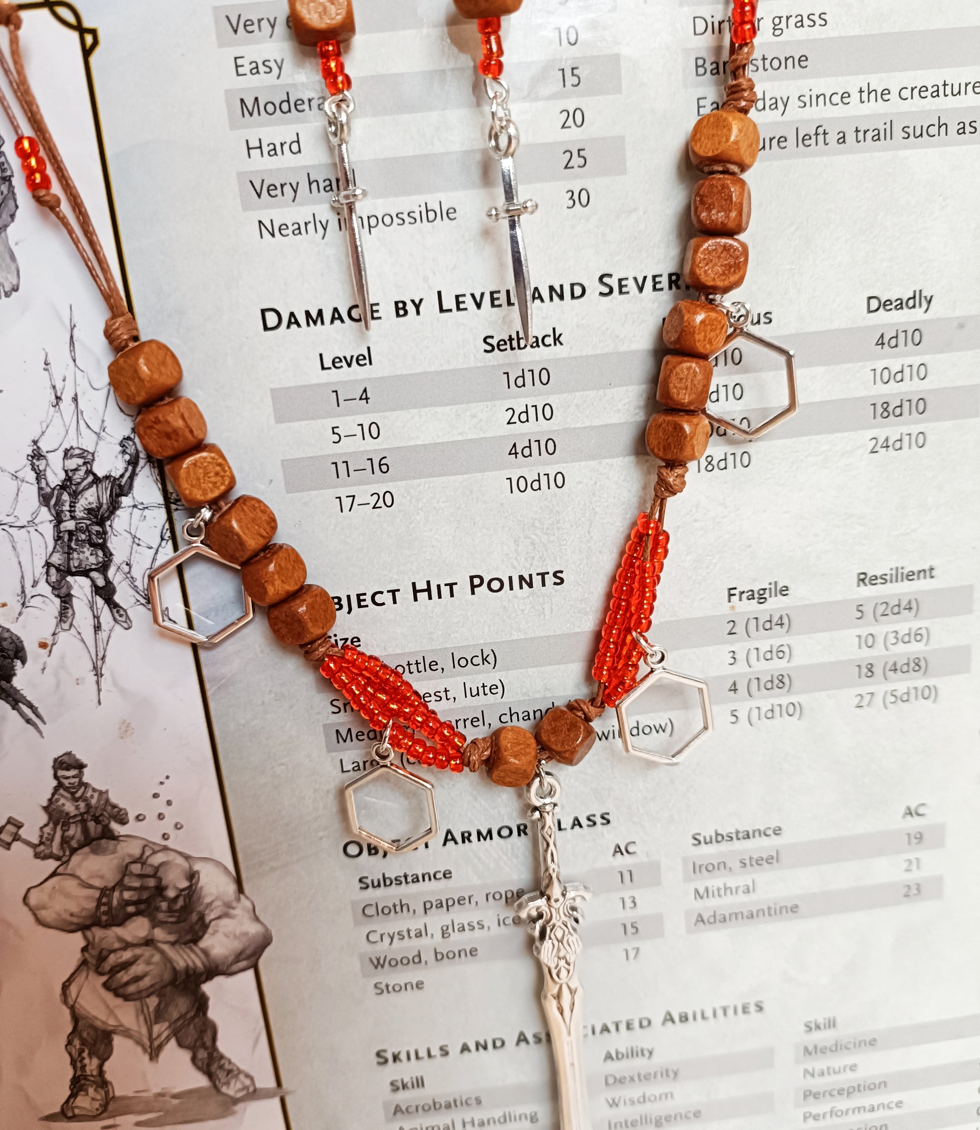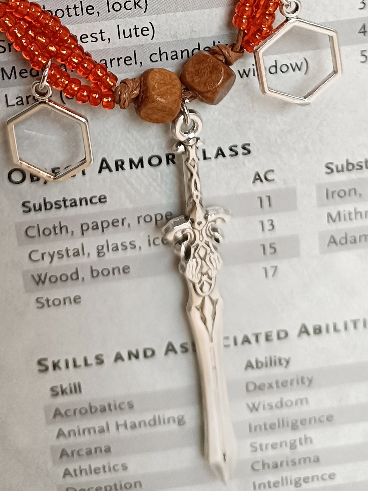 Unleash your inner warrior with our Barbarian Jewelry Set, a bold and powerful collection inspired by the strength and spirit of the barbarian class in Dungeons & Dragons. Featuring a striking greatsword pendant, glass pearls, and rugged leather cord, this set is perfect for those who embrace adventure, battle, and the untamed wilds.