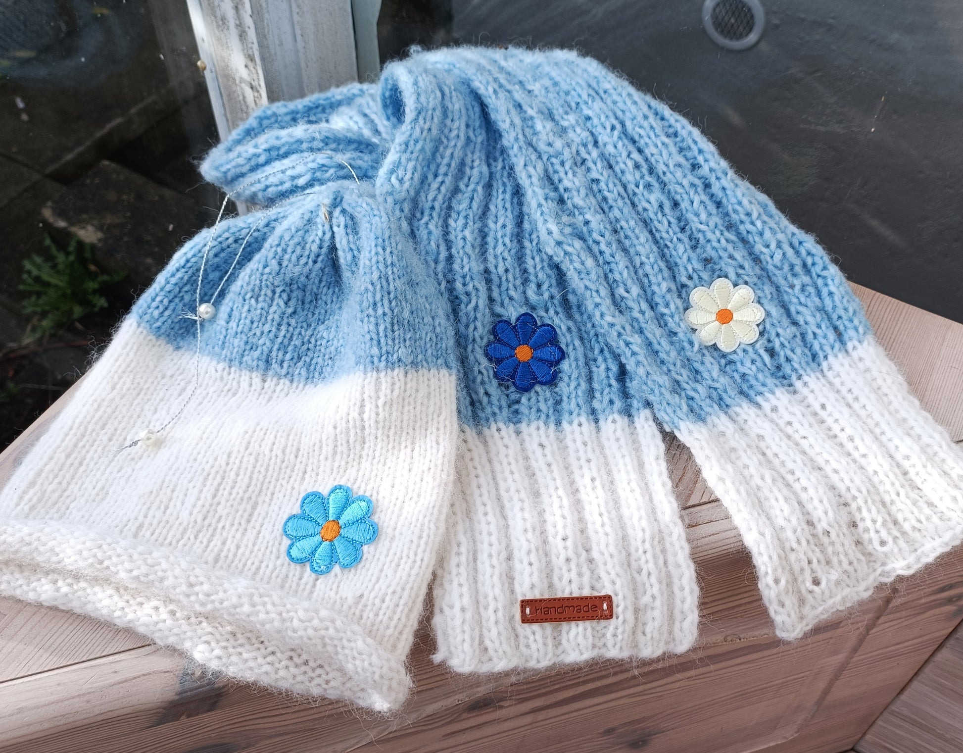 Add a touch of elegance and charm to your winter accessories with our Blue Daisy Beanie & Scarf Set. Hand-knitted from 100% alpaca wool, this luxurious set combines the softness and warmth of natural fibers with the delicate beauty of daisy embroidery. The harmonious blend of white and blue hues creates a timeless, serene design that’s perfect for colder days.
