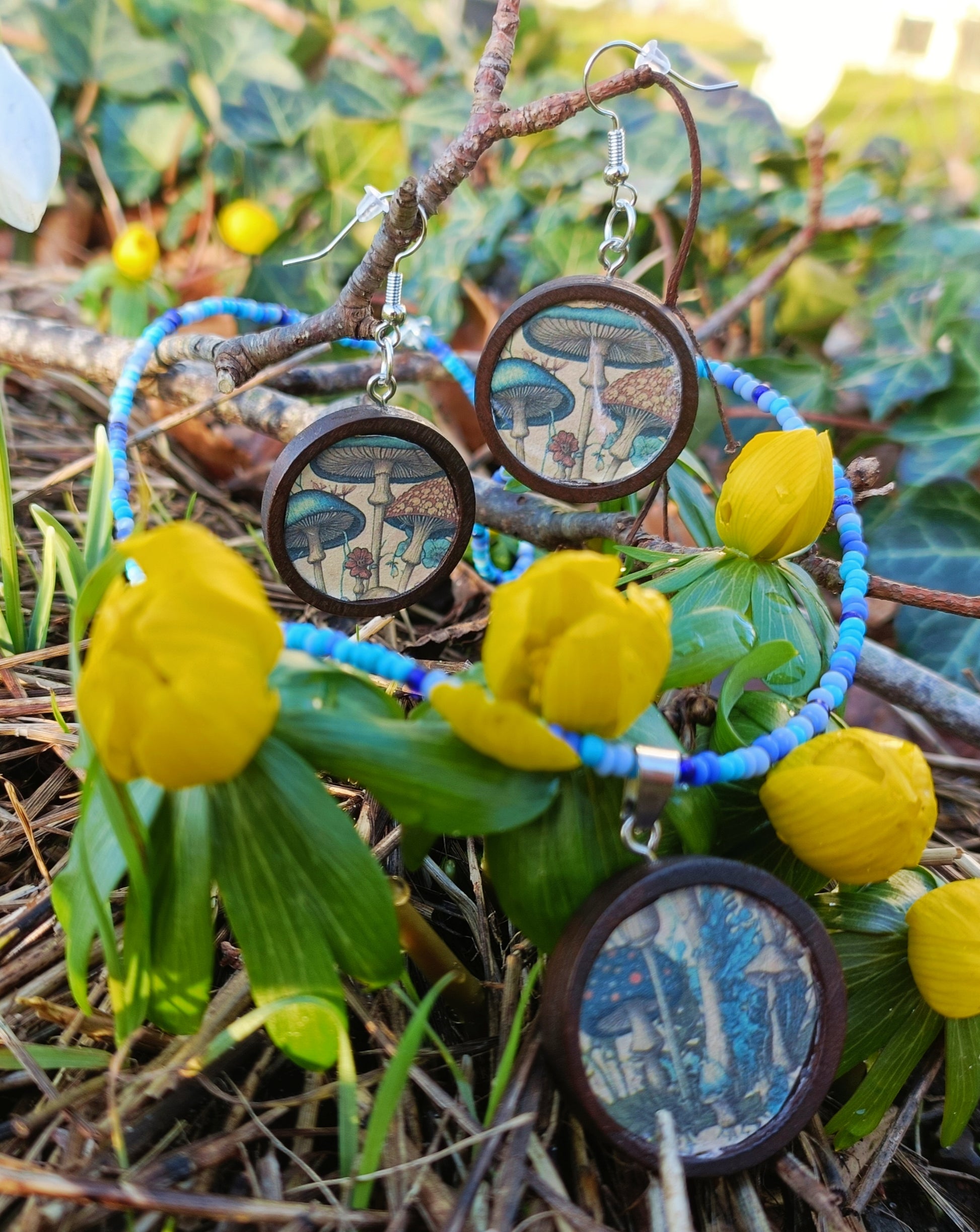 Step into a whimsical world with our Blue Mushroom Jewelry Set, a magical blend of earthy elegance and enchanting design. Handcrafted with stained beech wood, clay pearls, and featuring delicate blue mushroom accents, this set evokes the charm and mystery of nature’s hidden wonders. Perfect for those who appreciate a blend of rustic craftsmanship and fantastical elements.
