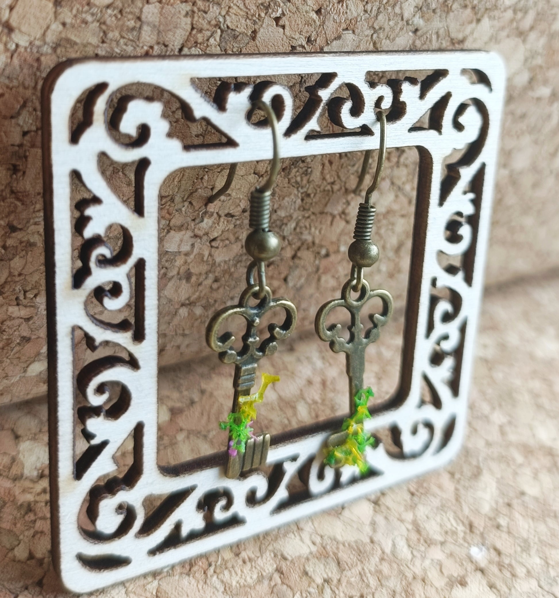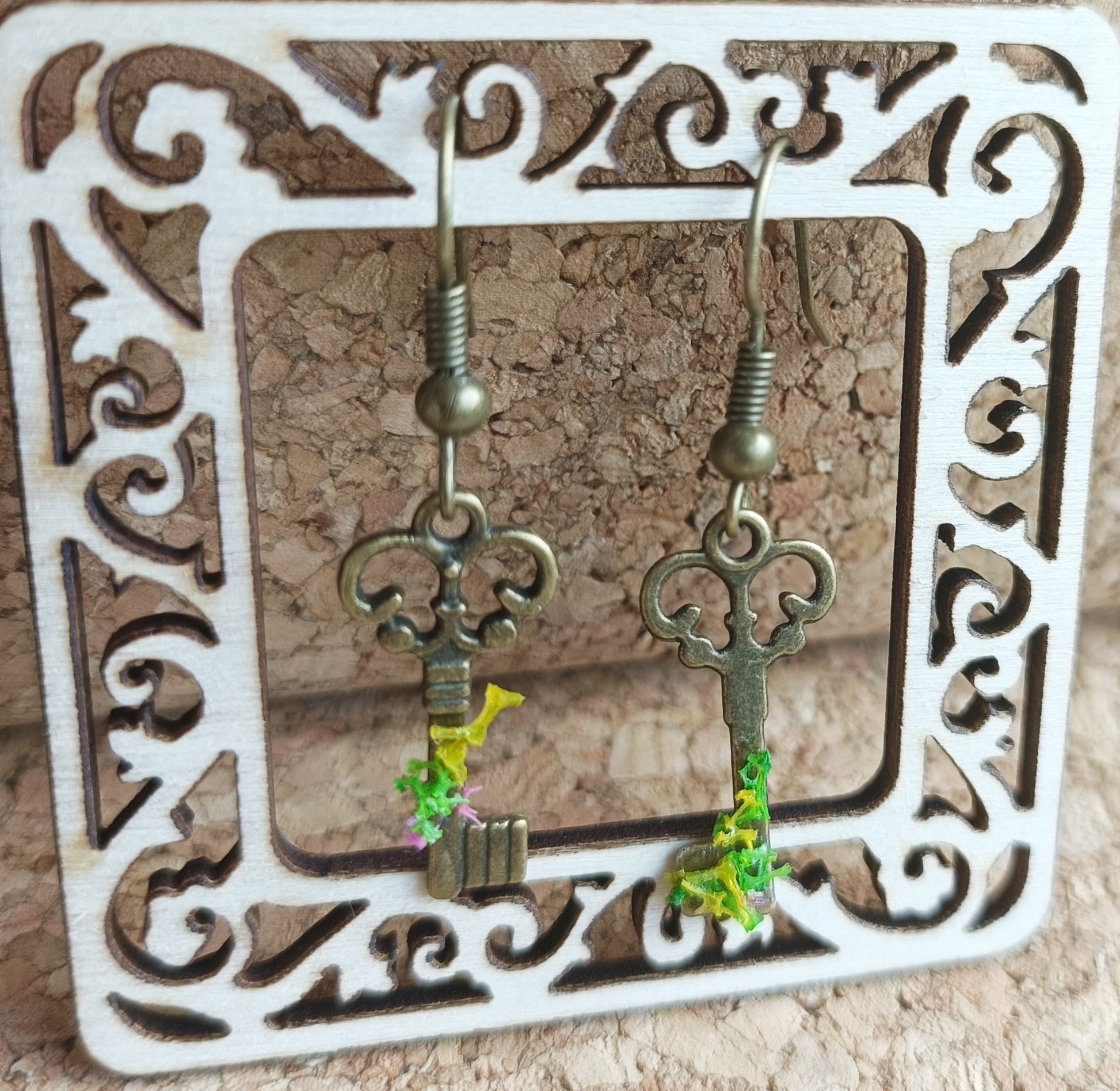 Unlock the magic of nature and vintage charm with these Brass Key Earrings. Made from durable alloy and featuring enchanting artificial moss ornaments, these earrings are a perfect blend of rustic elegance and earthy beauty. Ideal for those who love unique, nature-inspired accessories.