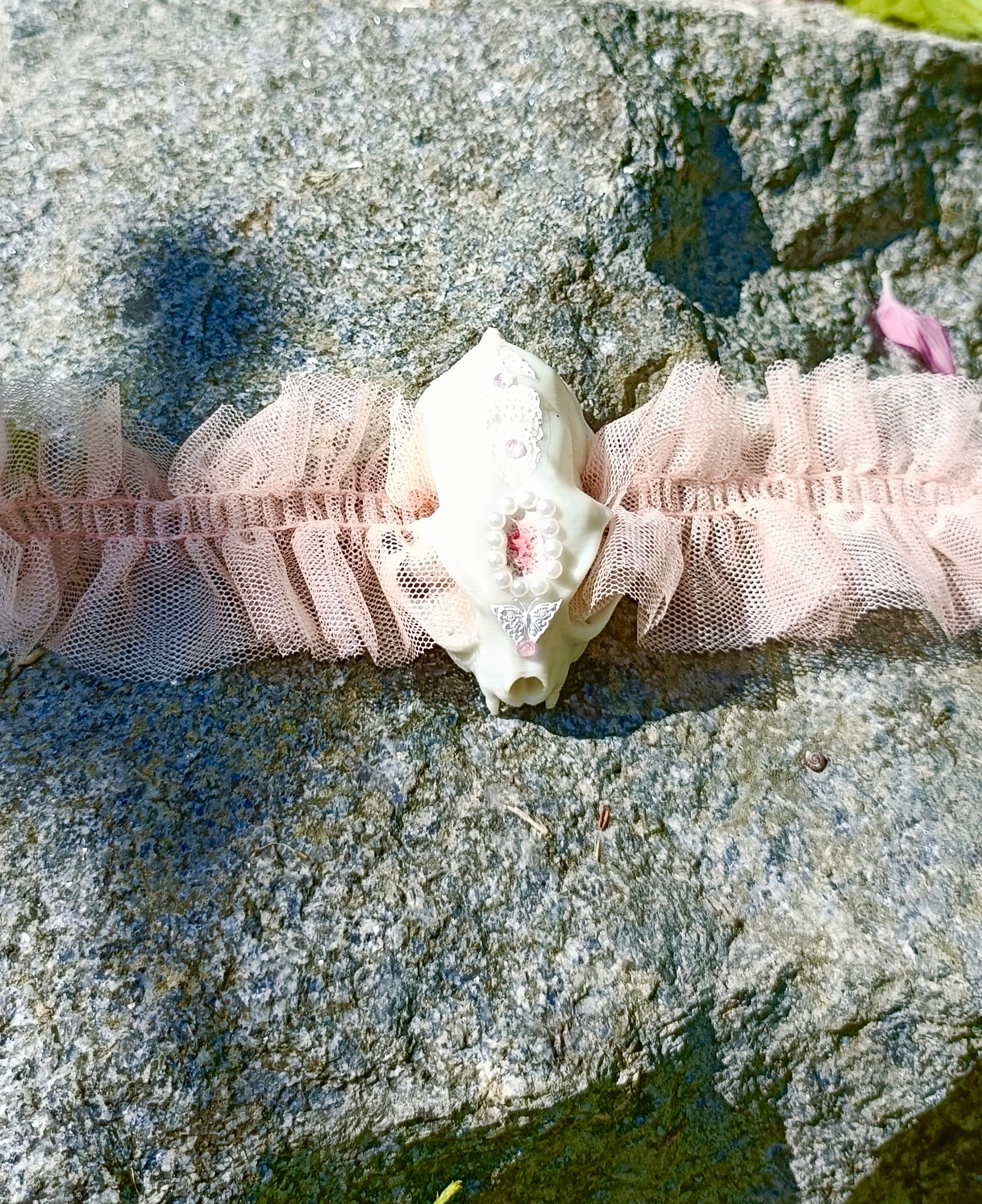Embrace the beauty of the macabre with this striking Cat Skull Choker, a hauntingly elegant piece of wearable art. Crafted from delicate soft tulle, the centerpiece features a detailed, 3D-printed cat skull, carefully hand-painted and adorned with shimmering acrylic zircons and pearls for a gothic-lux finish.