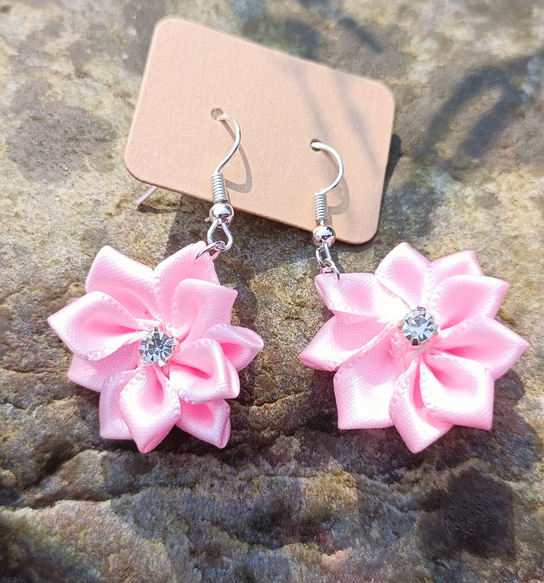 Inspired by the ethereal beauty of cherry blossoms in full bloom, these Cherry Blossom Earrings are a true work of art. Each earring is meticulously handcrafted with delicate folded satin ribbon to create soft, lifelike sakura blossoms. At the heart of each blossom, a shimmering zirkon stone adds a touch of sparkle, mimicking the dewdrops that glisten on petals in the morning light.