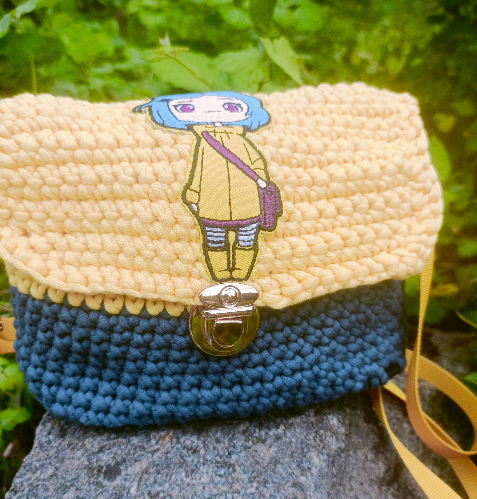 Step into a world of whimsy with this handmade Coraline purse, inspired by the beloved stop-motion film. Crafted from durable cotton, it features a detailed yarn embroidery patch of Coraline, adding a touch of texture and charm. Perfect for fans of the story or anyone who loves unique, artisan-made accessories.