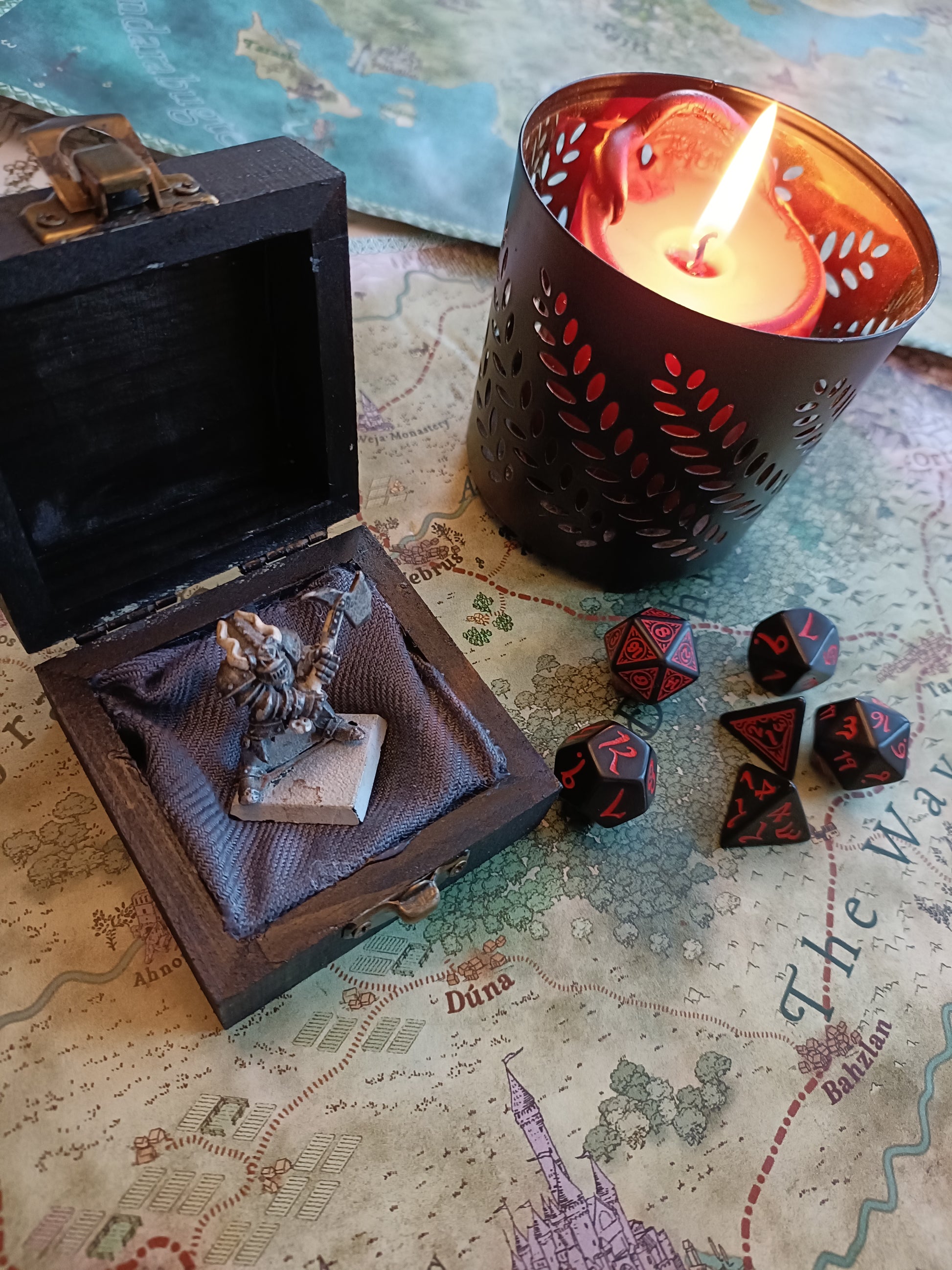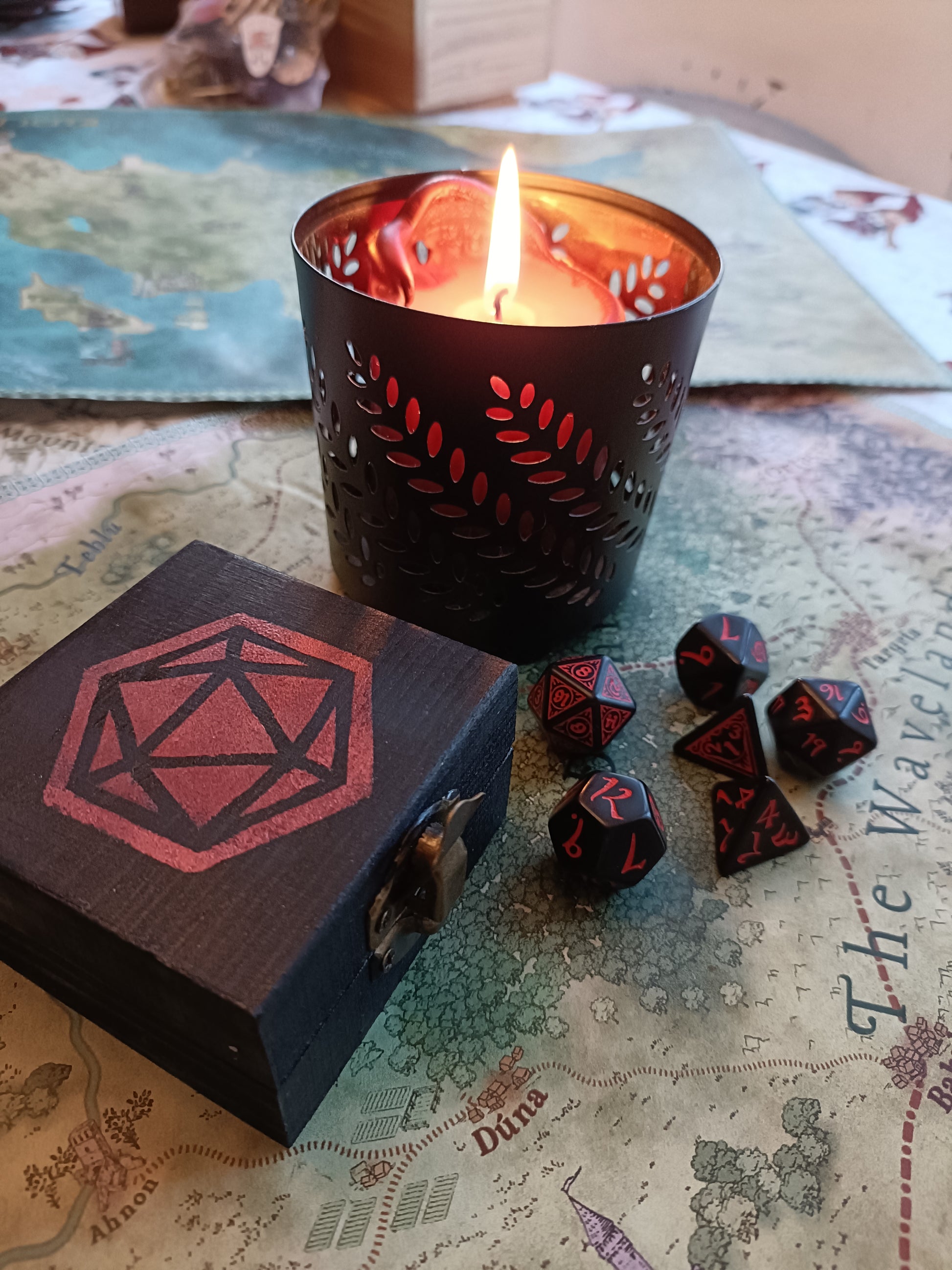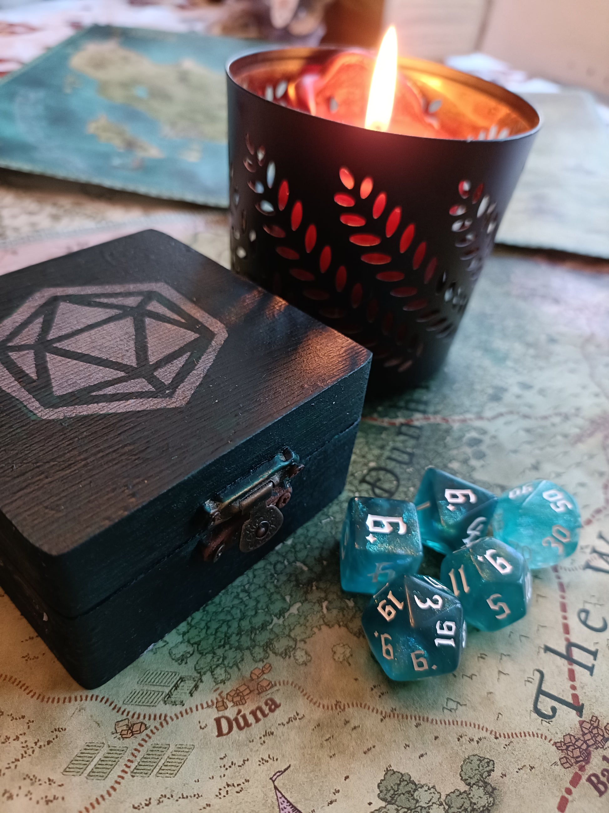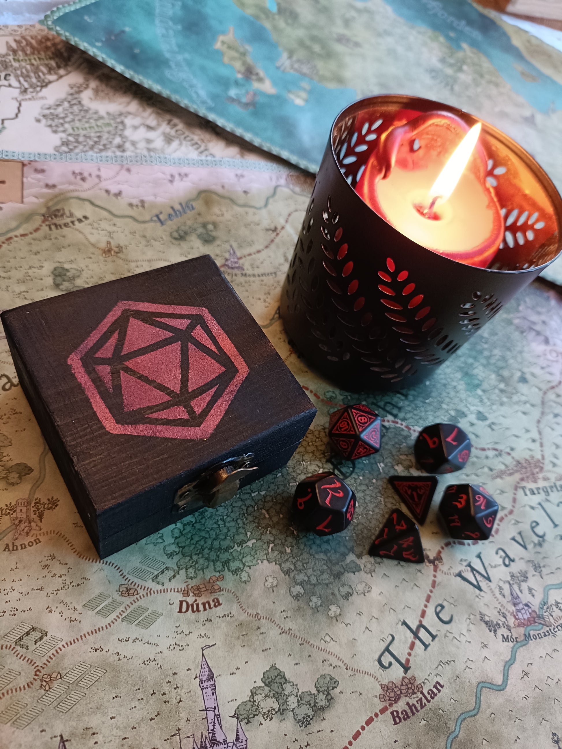 Safeguard your treasured D&D miniatures in style with this handcrafted D&D Miniature Transporter. Made from durable beech wood, it features a stenciled d20 symbol on the lid and either cashmere, chiffon, or velvet interior, combining functionality with elegance.
