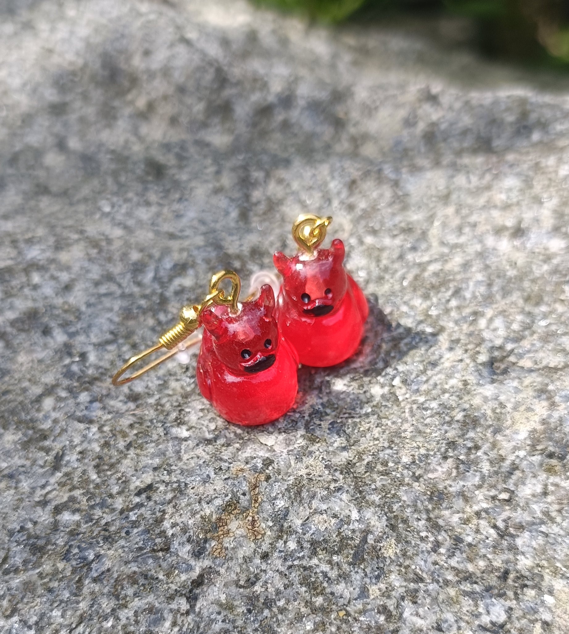Add a playful twist to your accessory collection with these handmade Devil Duck earrings. Featuring tiny resin devil rubber ducks, each meticulously hand-painted for vibrant detail, they hang from sturdy steel hooks for comfortable wear. Perfect for those who love quirky, fun, and unique statement jewelry with a mischievous edge.
