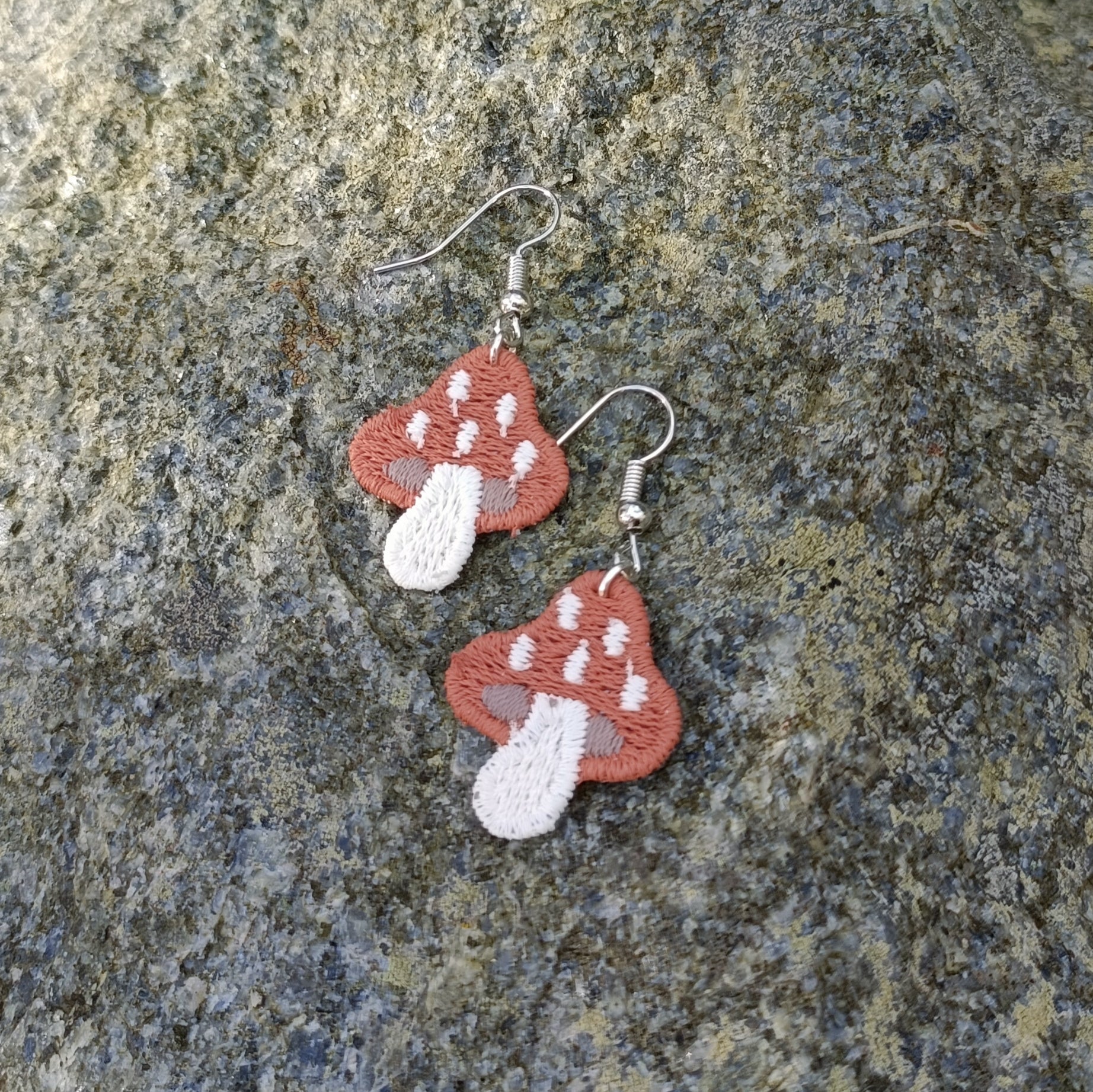 Bring a touch of forest magic to your style with these handcrafted Embroidered Mushroom Earrings. Each pair features adorable, high-detail mushrooms stitched from soft cotton embroidery thread, creating a lightweight, textured design that stands out with natural charm.