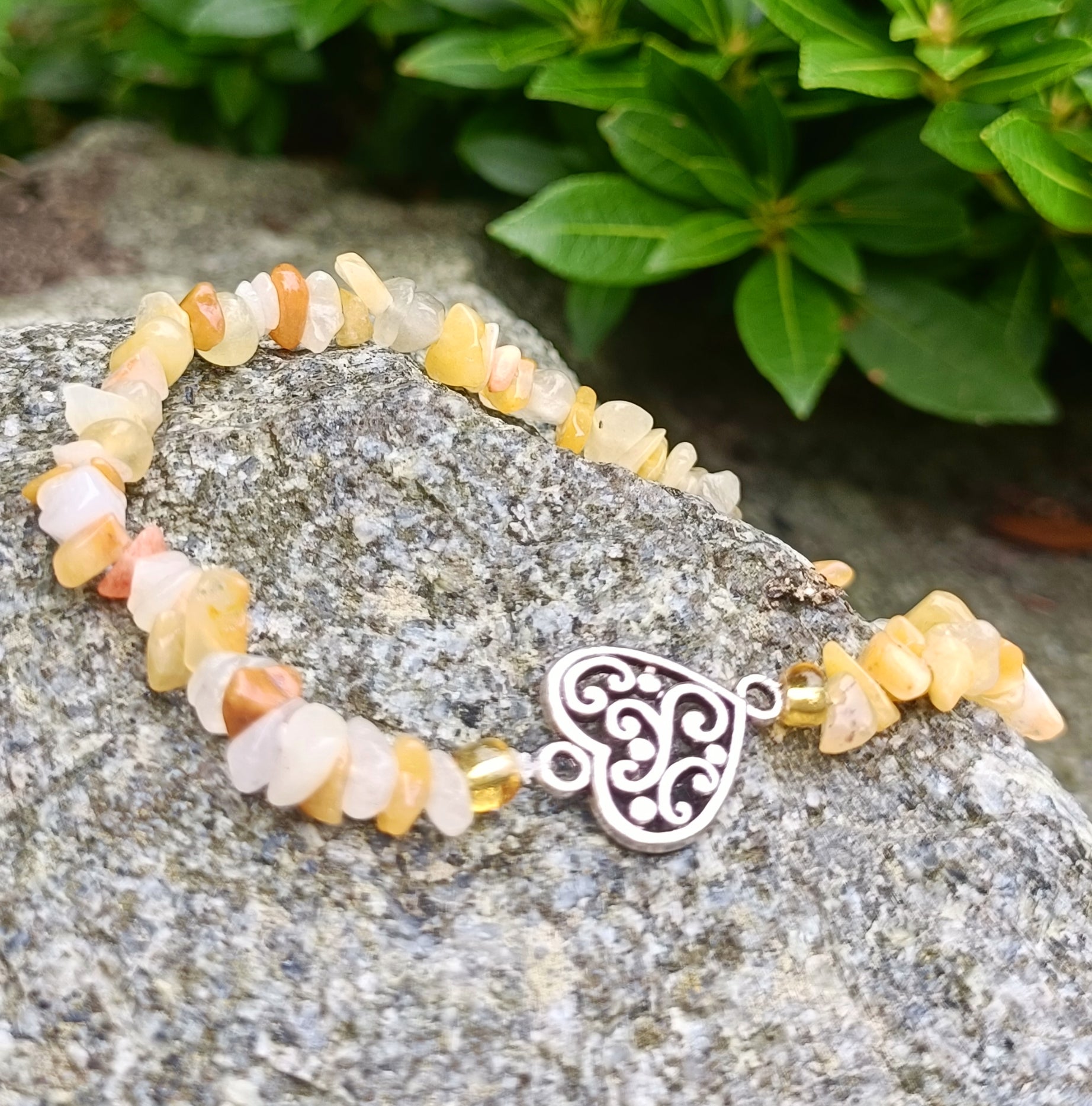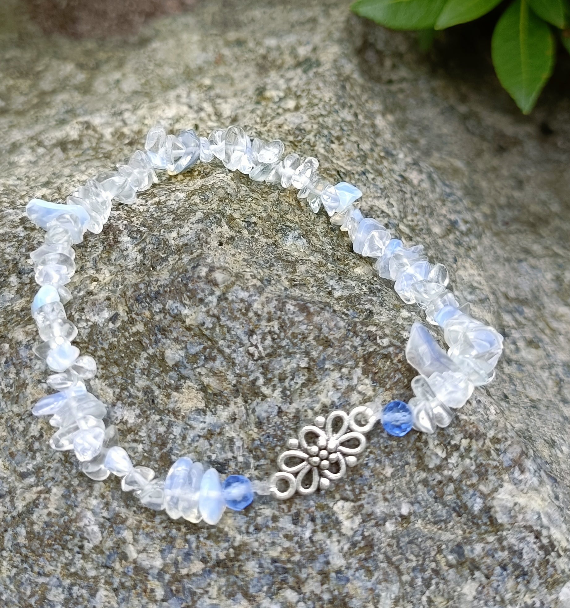 This elastic bracelet features gemstones and aluminum details, creating a stylish and versatile accessory. The gemstones add a touch of natural elegance and color, while the aluminum components provide a modern and sleek contrast. The stretchable design ensures a comfortable fit, making it suitable for everyday wear or special occasions.
