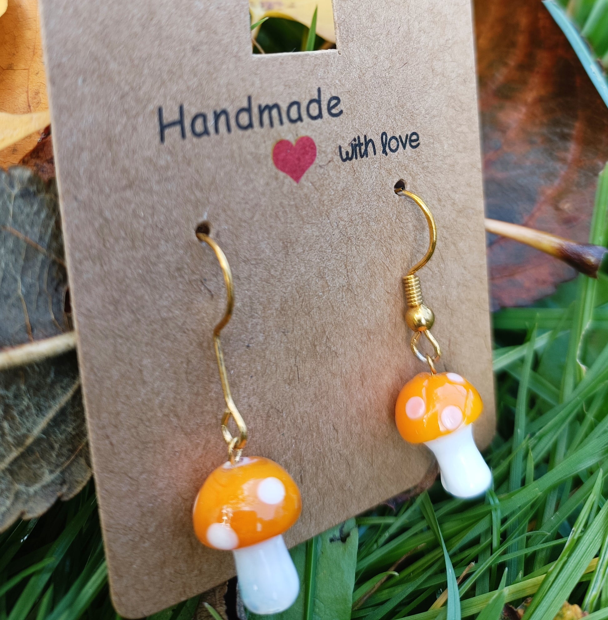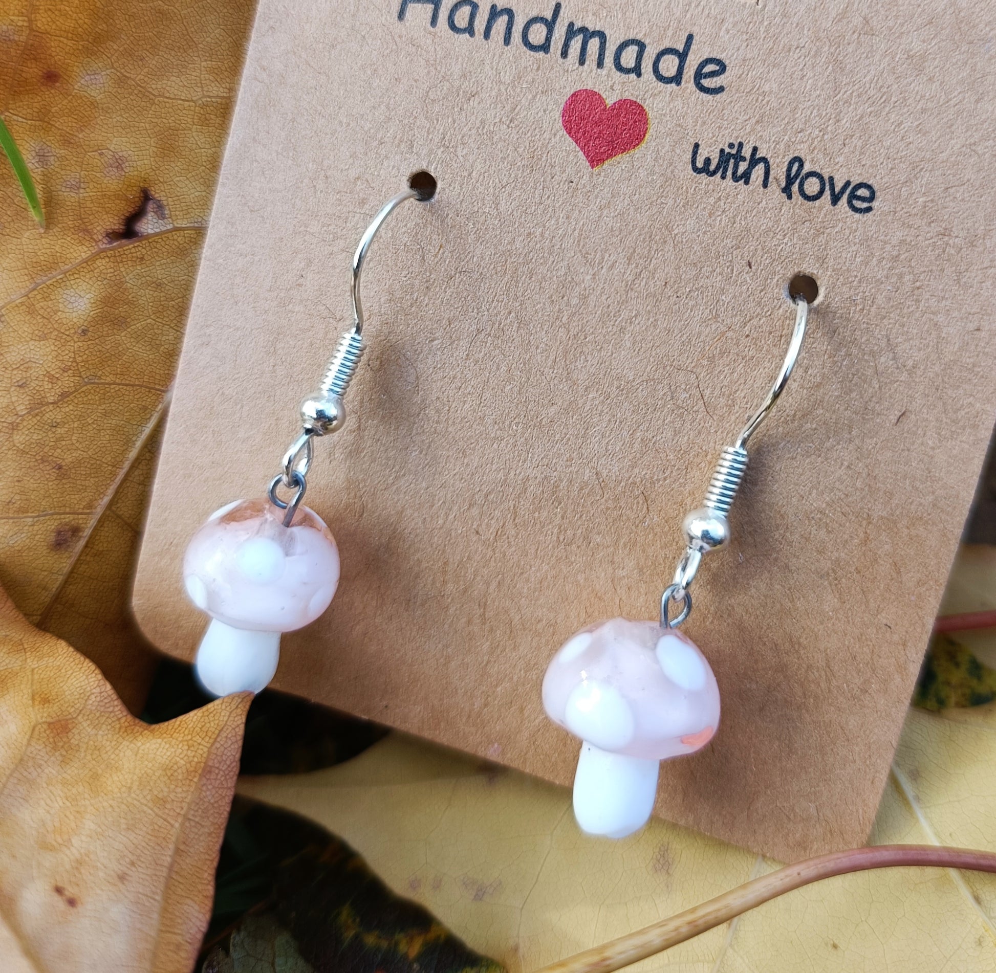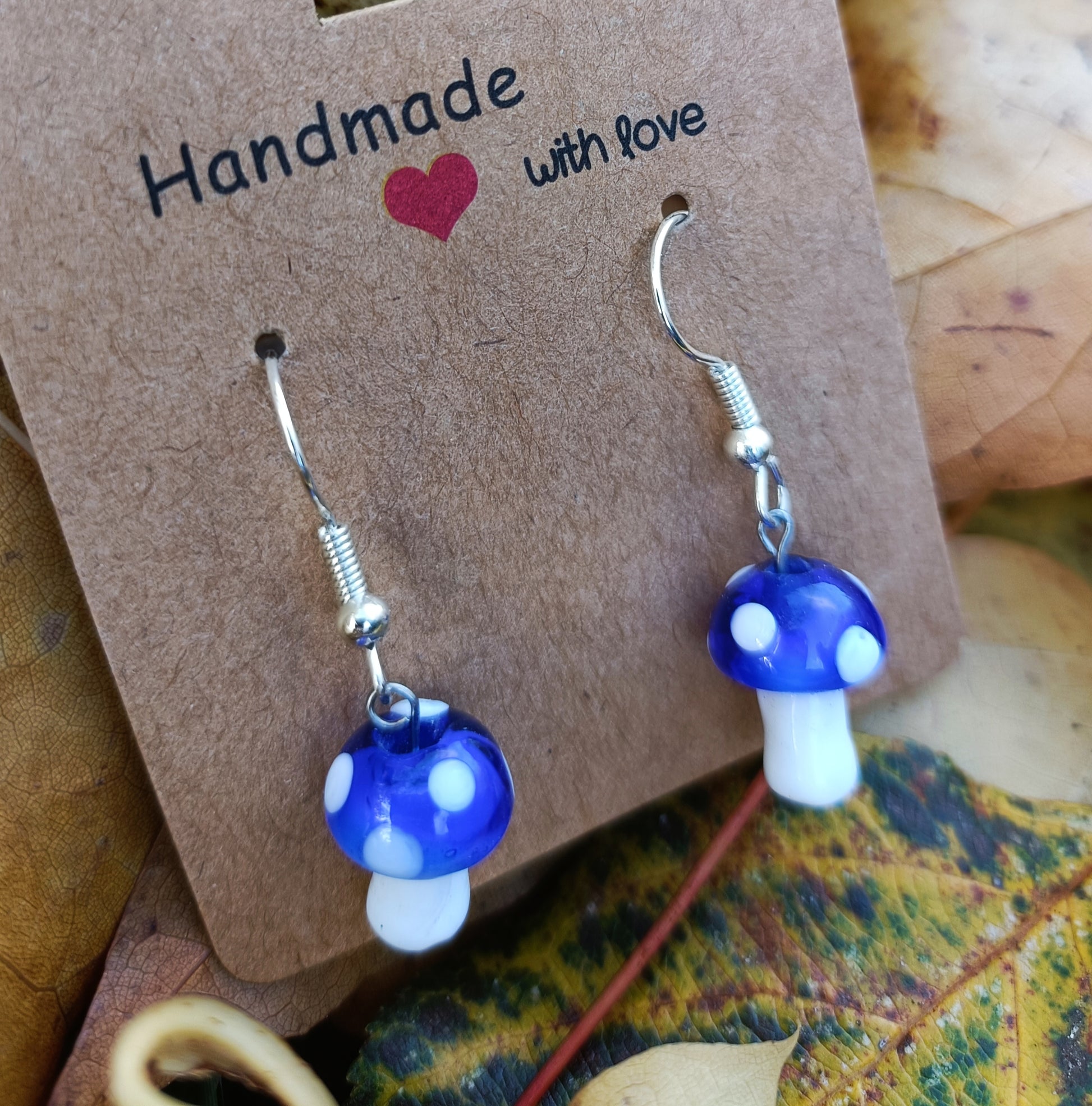 Bring a touch of woodland magic to your style with these Glass Mushroom Earrings, featuring intricate glass mushroom designs suspended from durable steel hooks. These whimsical, nature-inspired earrings evoke the enchanting world of forests and fairytales, making them a perfect accessory for those who love unique, earthy jewelry.