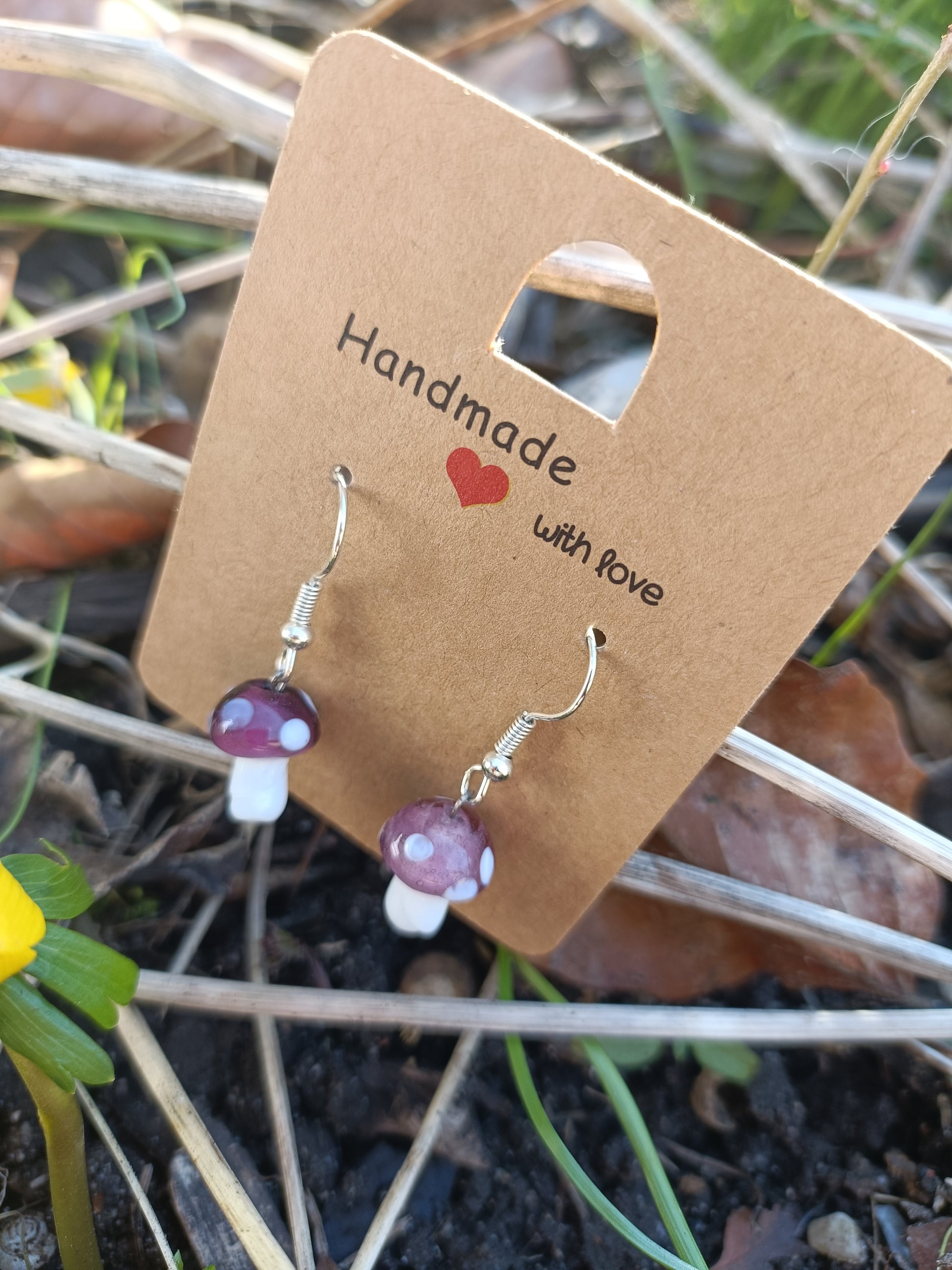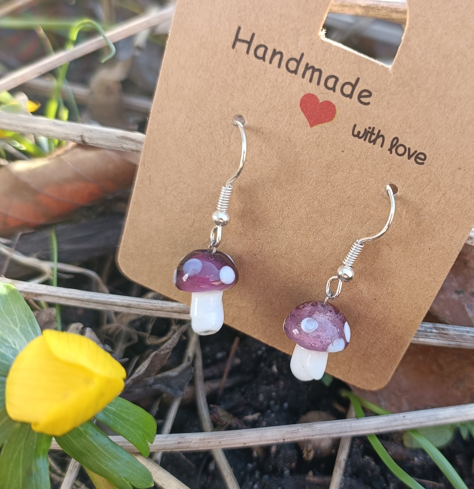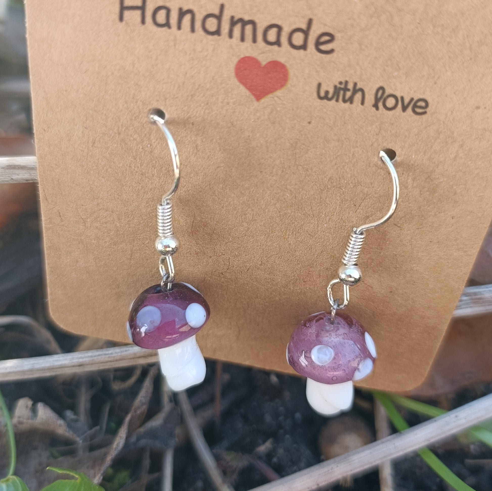 Bring a touch of woodland magic to your style with these Glass Mushroom Earrings, featuring intricate glass mushroom designs suspended from durable steel hooks. These whimsical, nature-inspired earrings evoke the enchanting world of forests and fairytales, making them a perfect accessory for those who love unique, earthy jewelry.