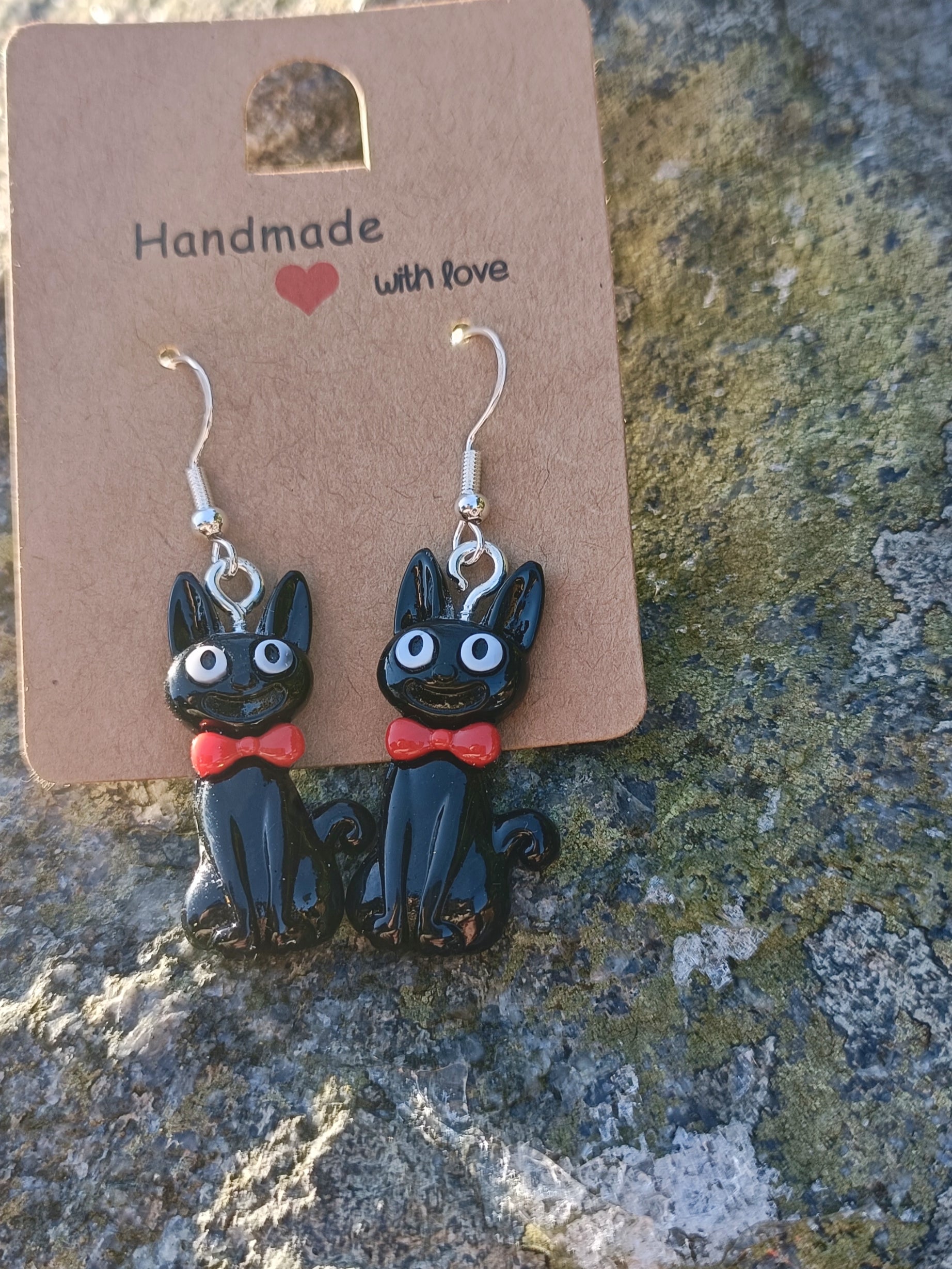 Embrace the magic of Studio Ghibli with these adorable Jiji Earrings, inspired by the beloved black cat from Kiki's Delivery Service. Crafted from high-quality resin and set on durable steel hooks, these earrings are perfect for fans of whimsical accessories and handmade craftsmanship.