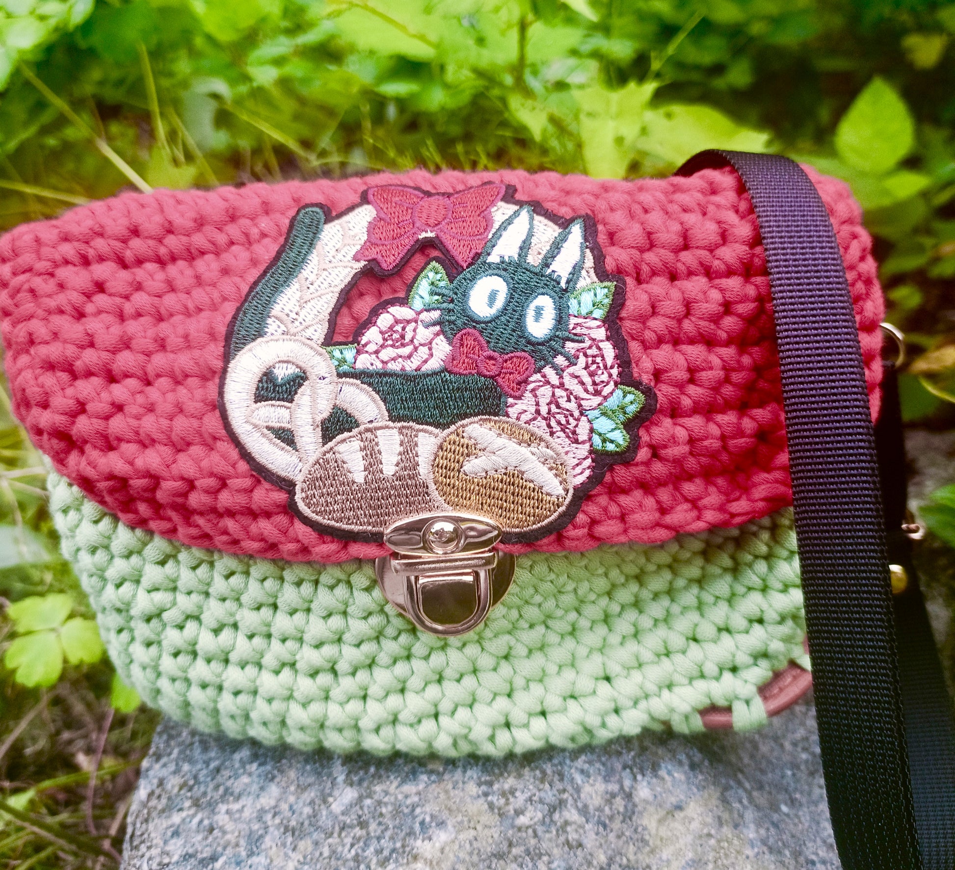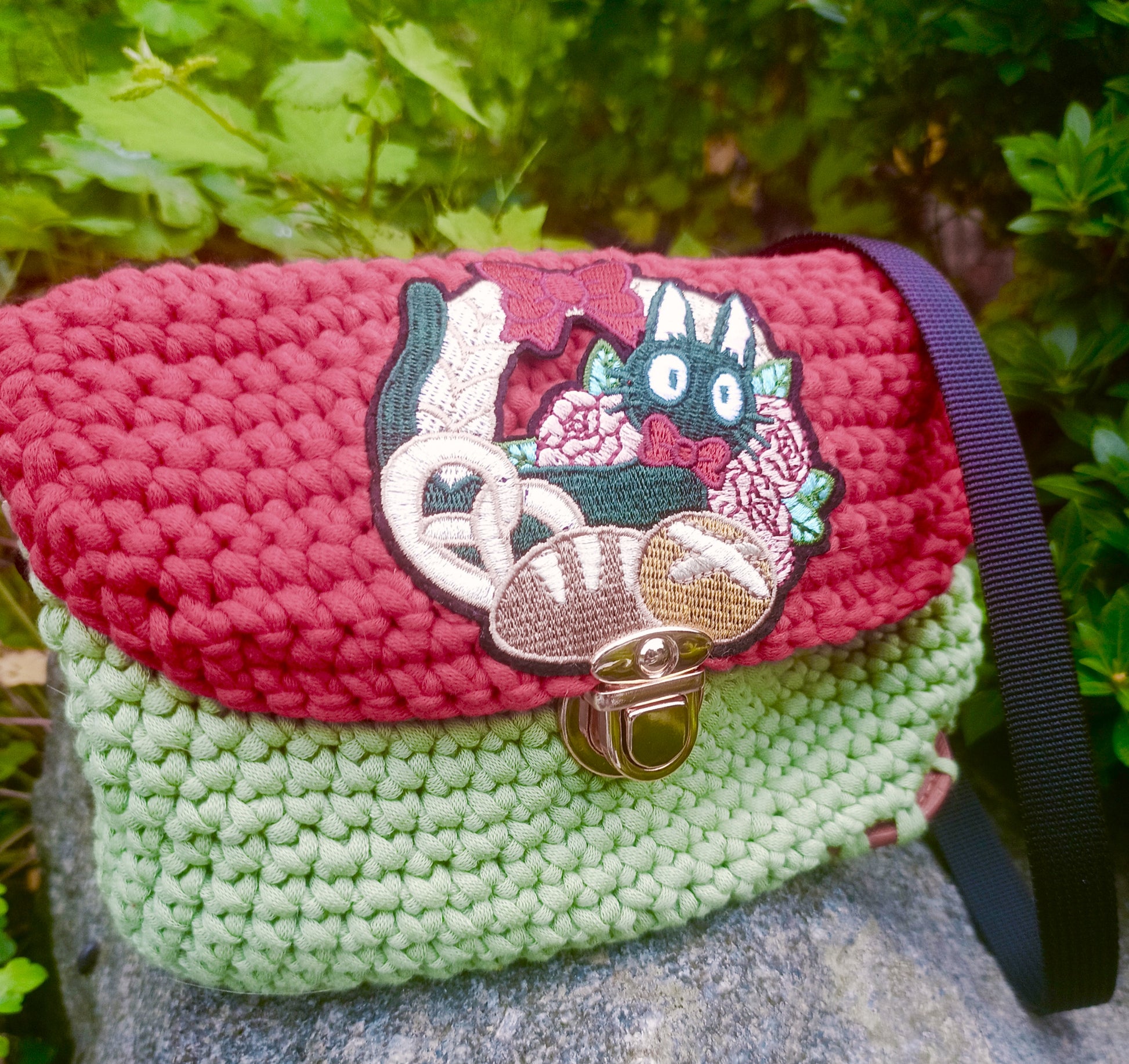 Bring a little charm to your day with this handmade Jiji purse, inspired by the beloved black cat. Made from soft, durable cotton, it’s accented with an embroidered Jiji patch crafted from fine yarn for a cozy, textured look. The playful design makes it a perfect gift for Studio Ghibli fans or anyone who loves cute, whimsical accessories