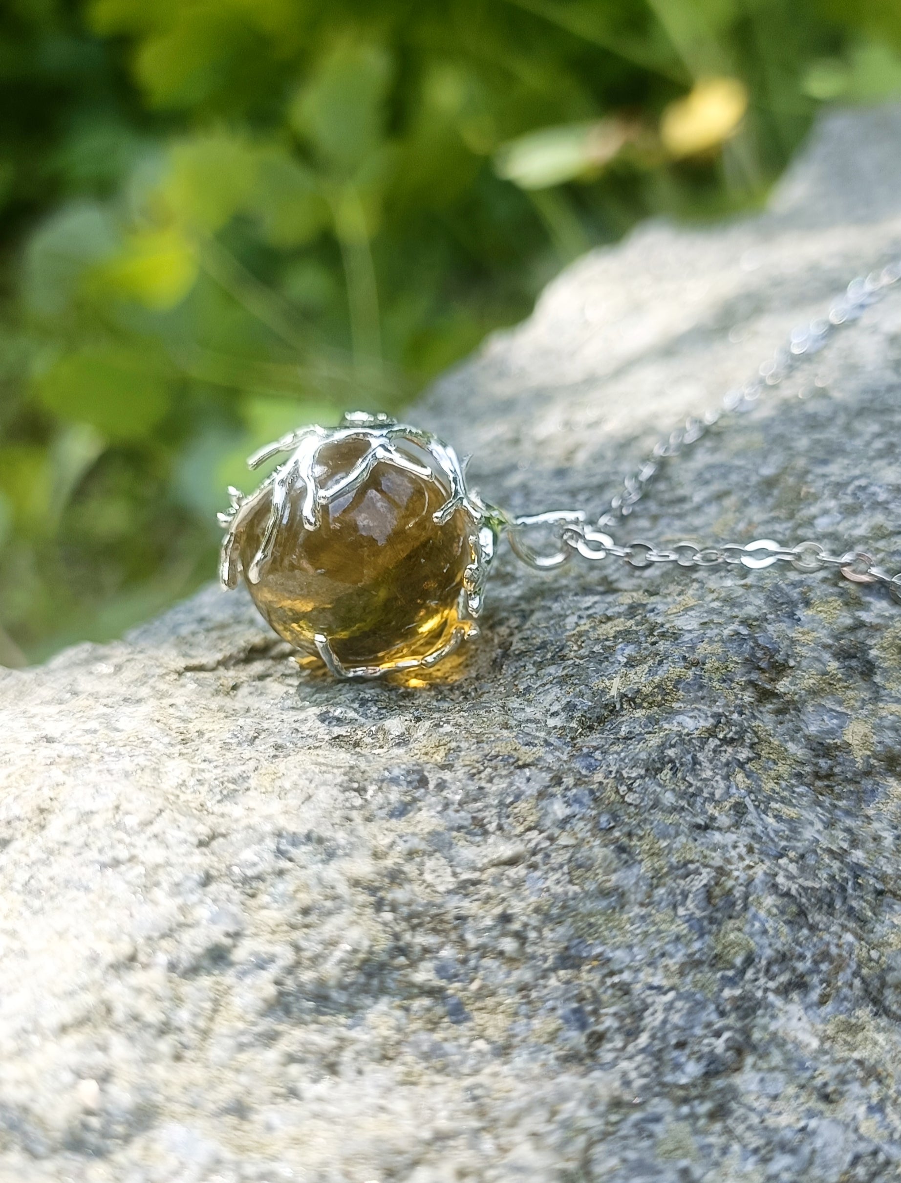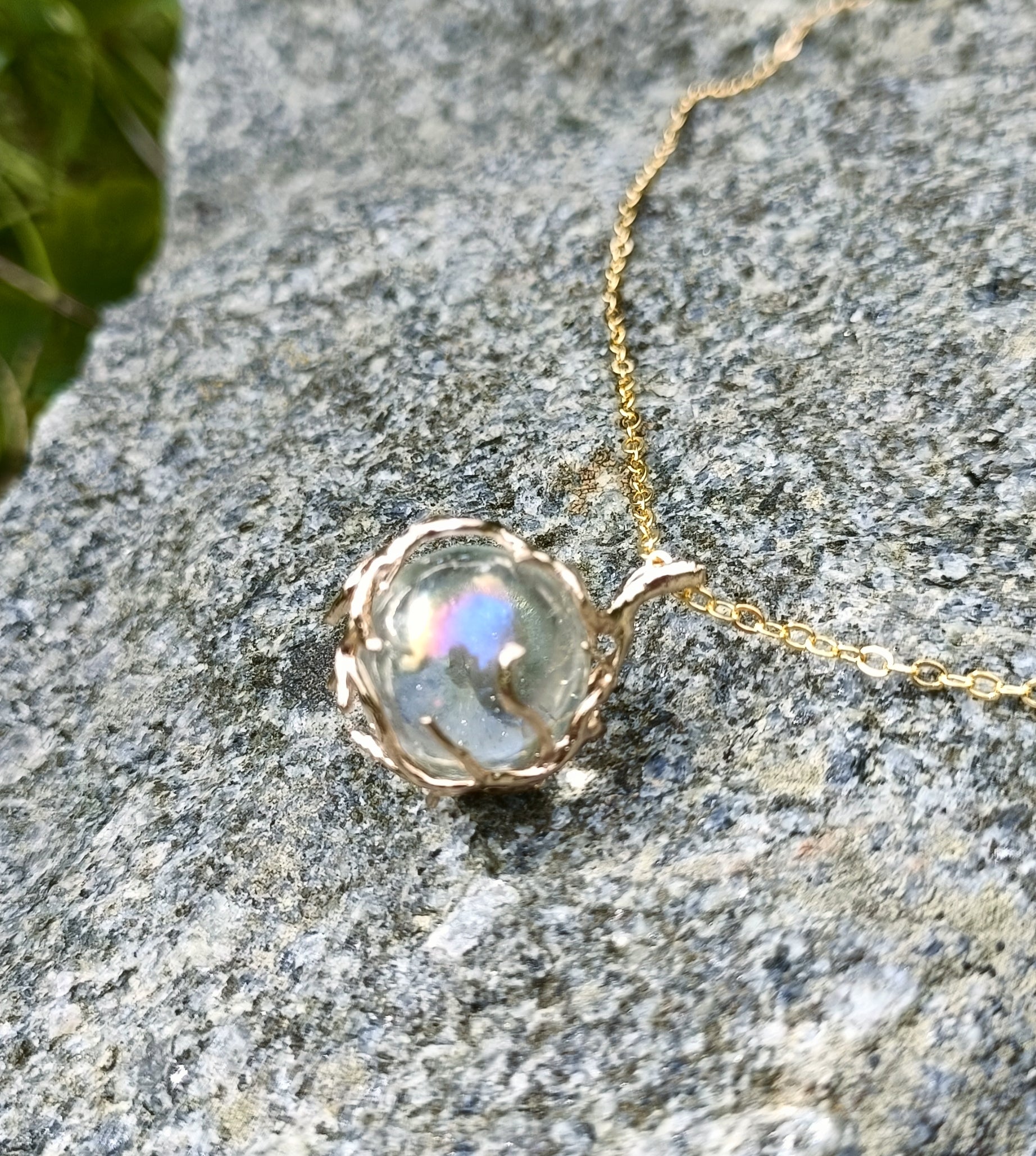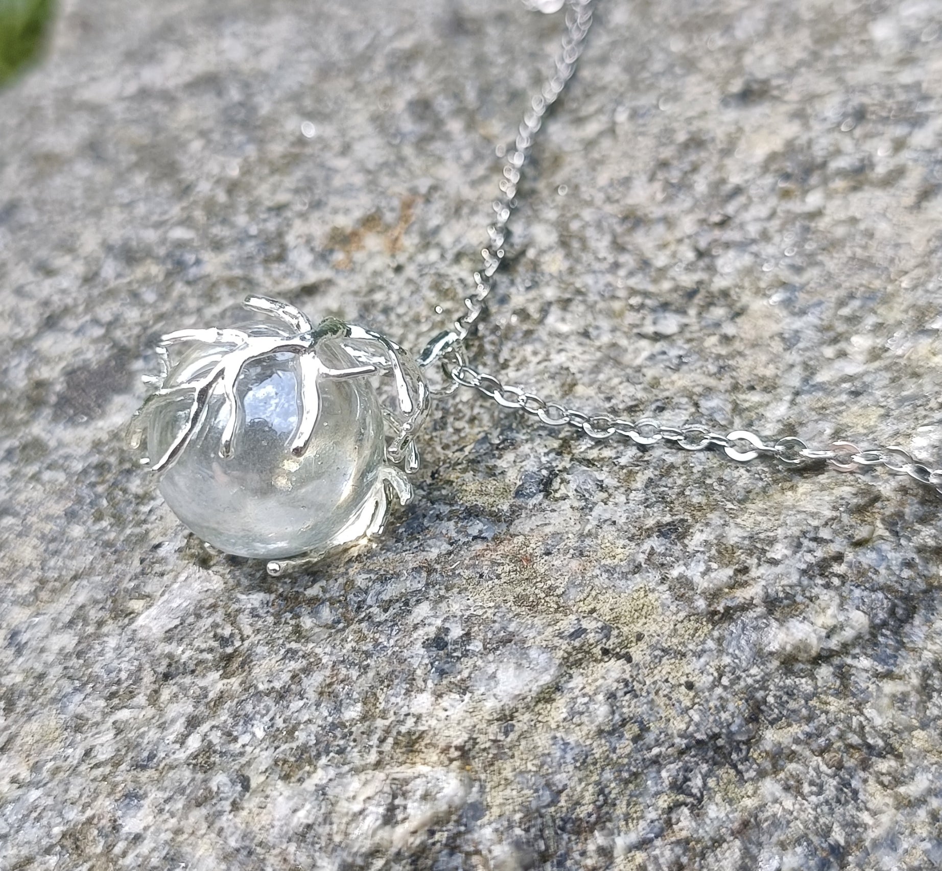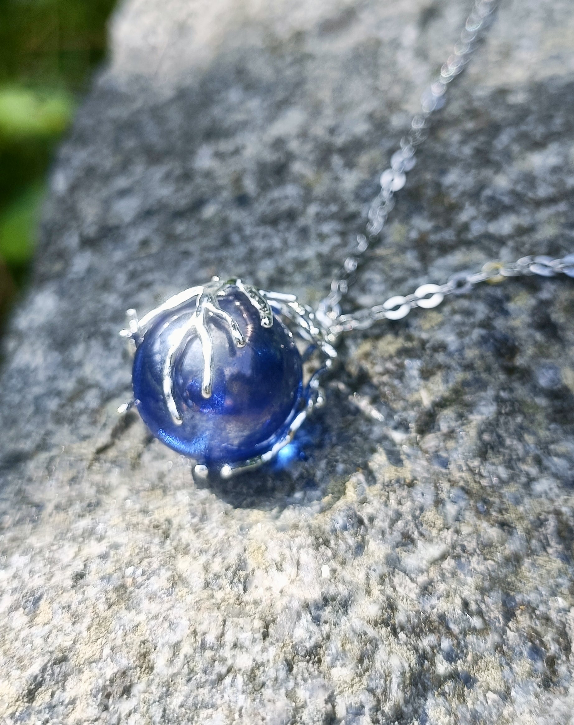 Carry a touch of enchantment with you wherever you go. This handmade magical orb necklace features a shimmering glass orb nestled in a rustic tin setting, hanging from a sturdy steel chain. Mysterious and eye-catching, it's the perfect piece for lovers of fantasy, magic, and mystical aesthetics.