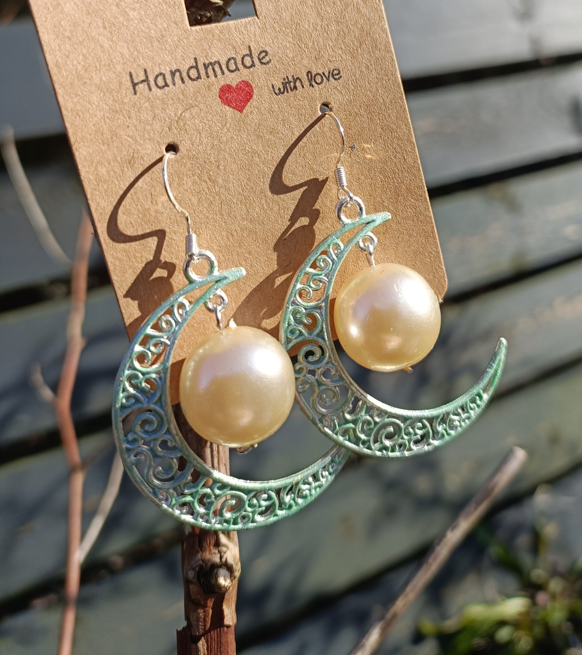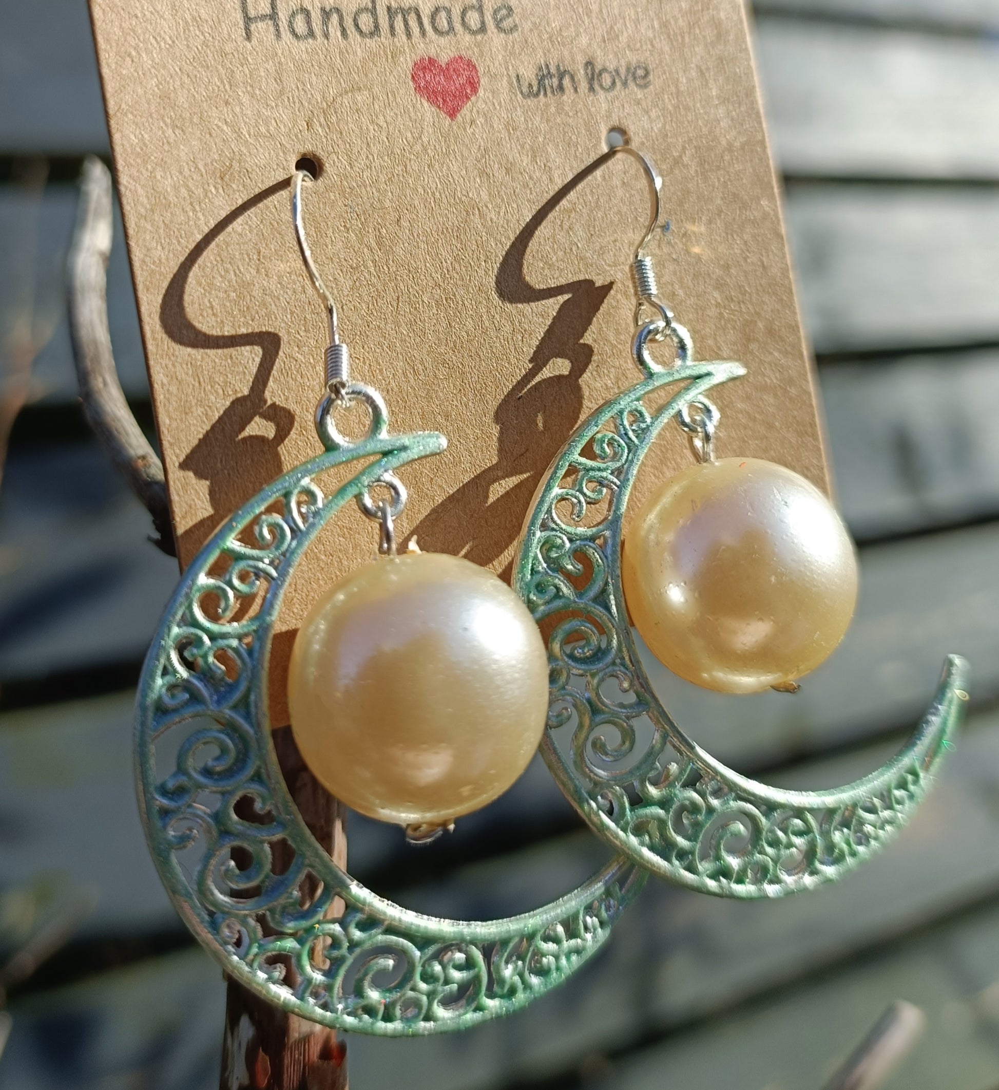 Illuminate your style with these enchanting Pearl Moon Earrings, a celestial-inspired blend of grace and mysticism. Crafted from lightweight aluminum alloy, each earring showcases a delicate crescent moon adorned with lustrous pearls, symbolizing wisdom, intuition, and feminine energy. The shimmering varnish enhances their radiant glow, ensuring they catch the light beautifully with every movement.