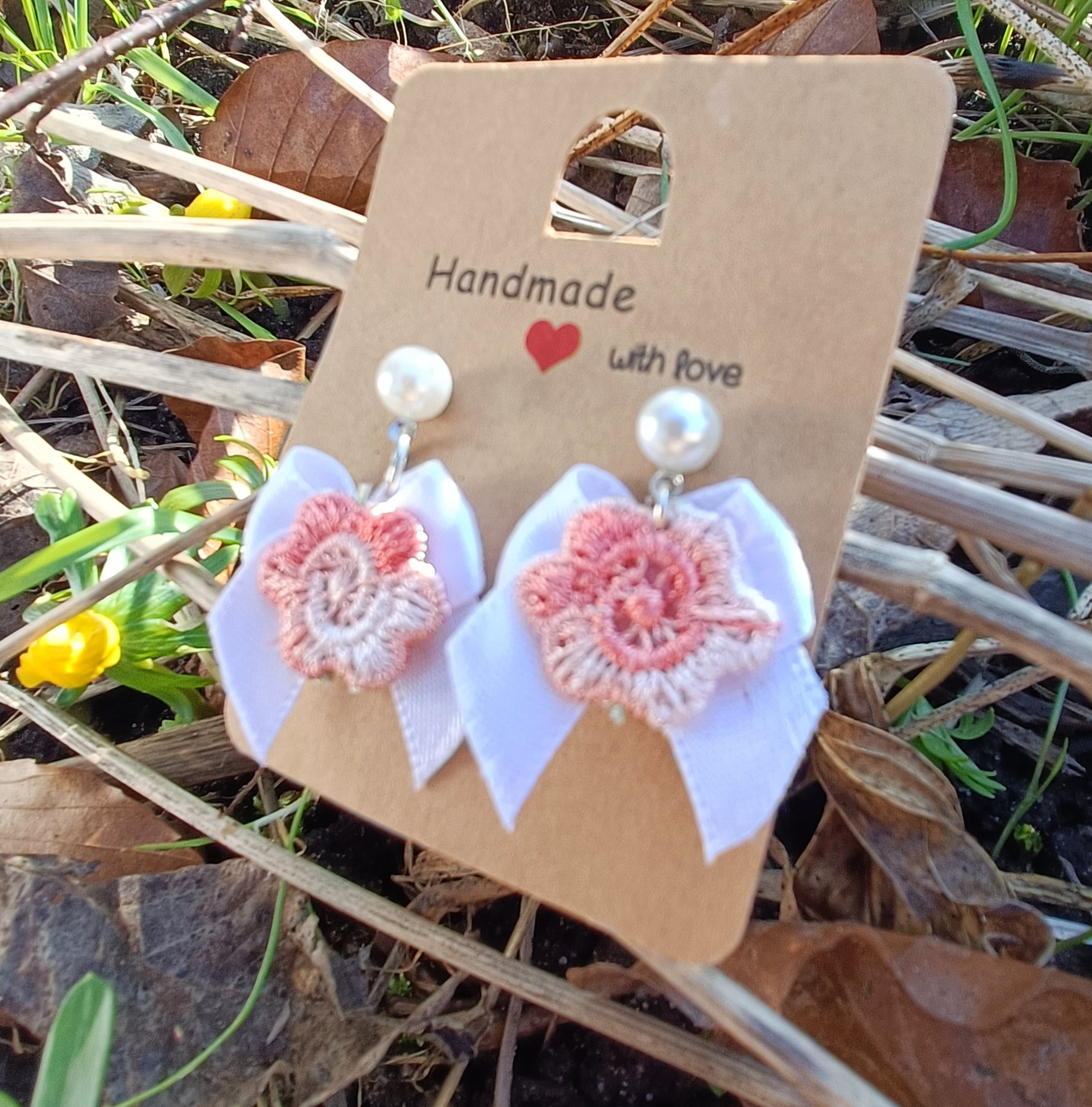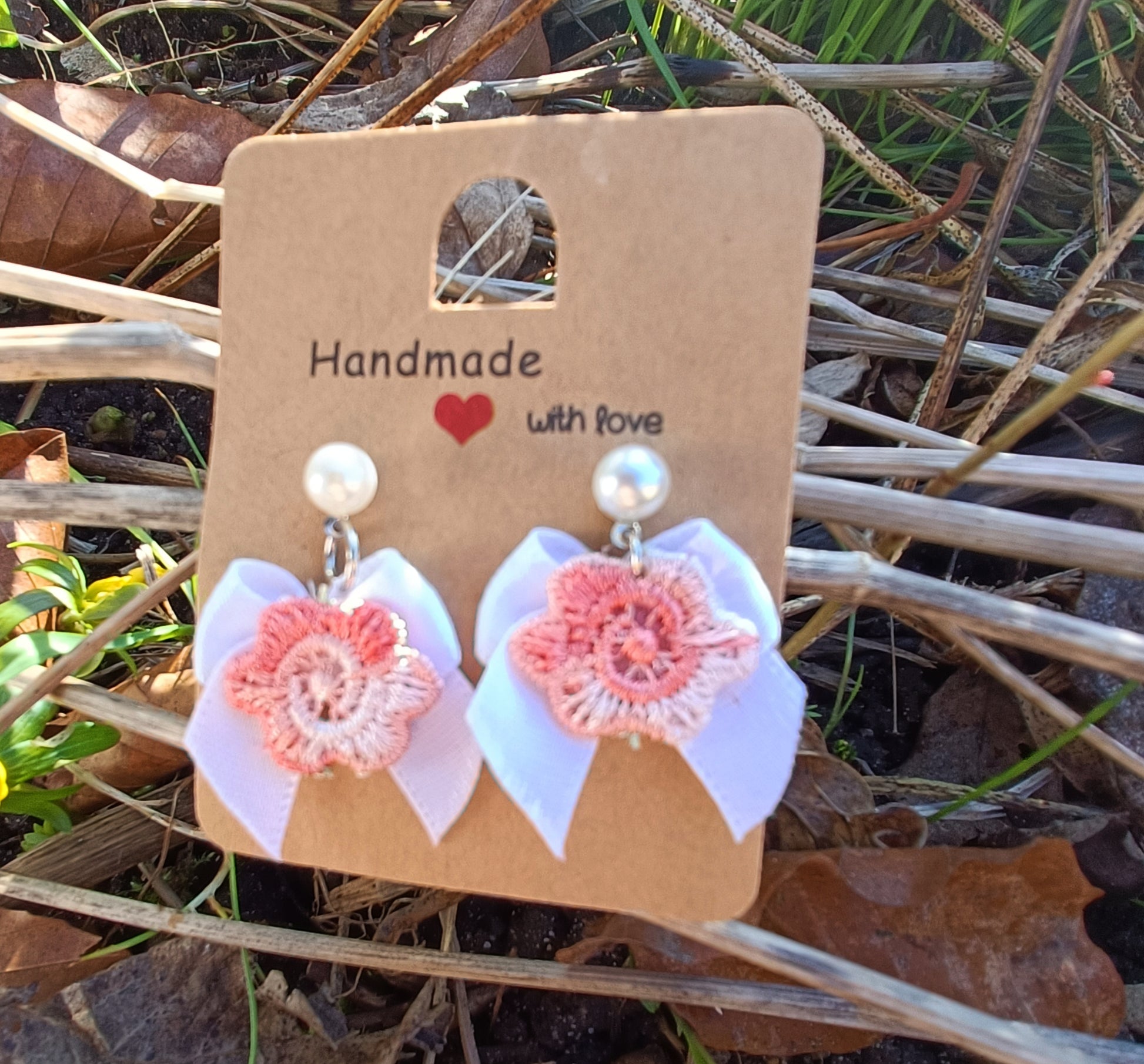 Add a touch of delicate sophistication with these Peony & Bow Earrings, where beauty meets intricate craftsmanship. Each earring features a stunning satin embroidered peony, accented by a perfectly tied satin bow, creating an elegant, feminine design. A lustrous pearl at the top of the bow adds a refined, timeless touch.