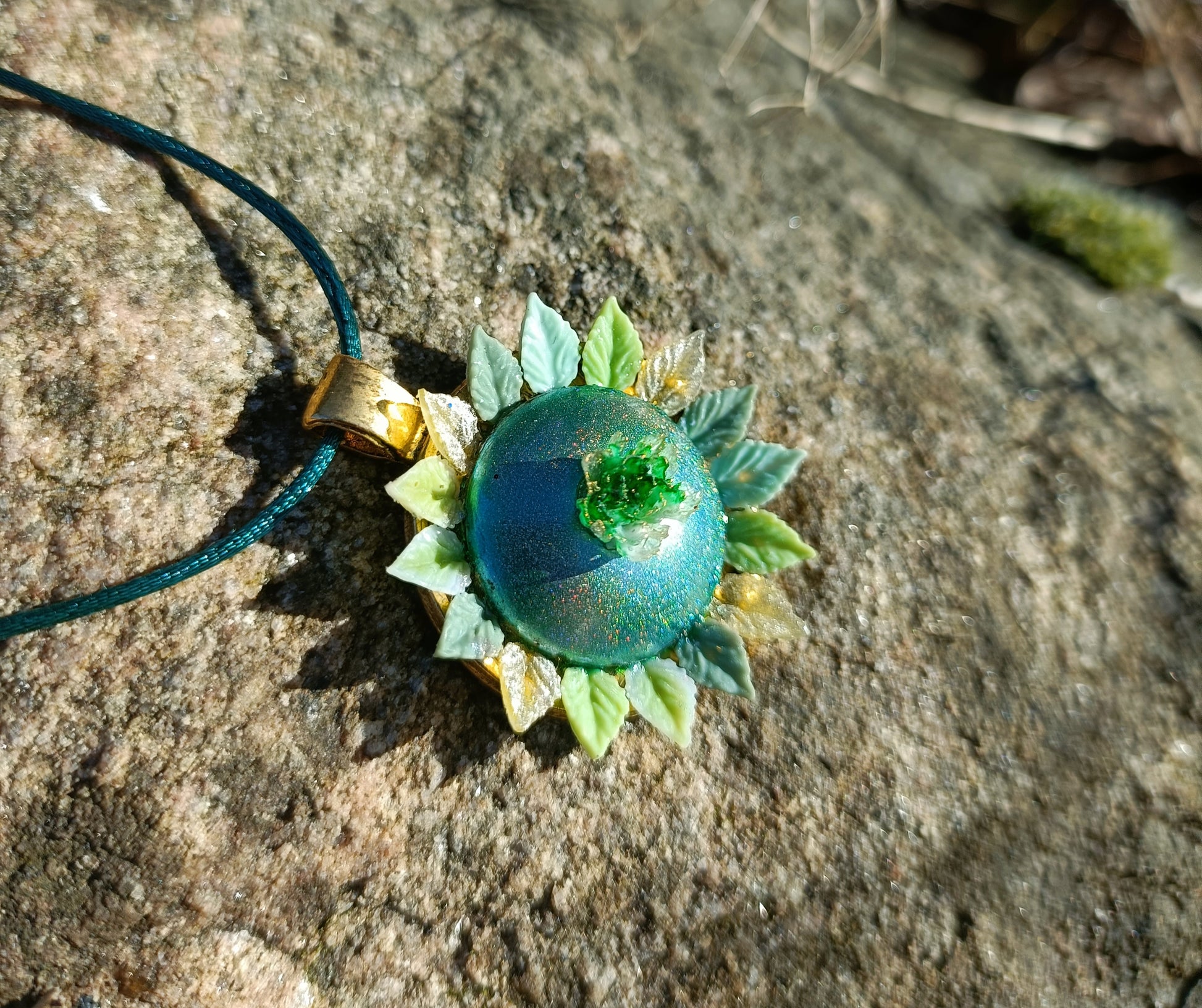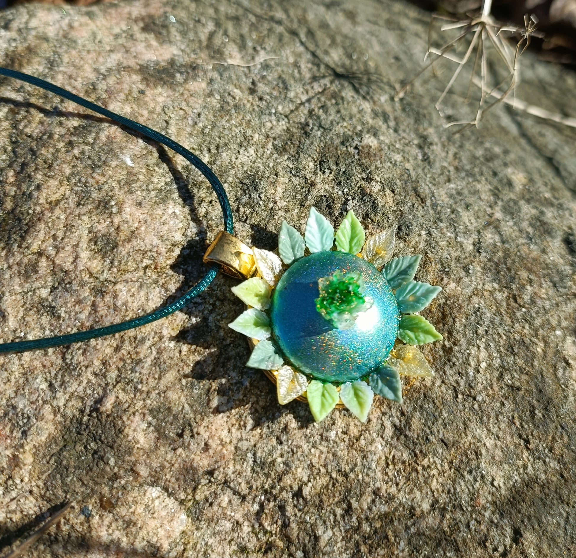 Step into nature’s elegance with the Peony & Leaf Crested Necklace, a beautifully crafted piece featuring a glass cabochon with shimmering varnish, intricate acrylic details, and a sturdy steel setting. This enchanting necklace is perfect for nature lovers, fae-inspired fashion, and those who appreciate delicate, botanical jewelry.