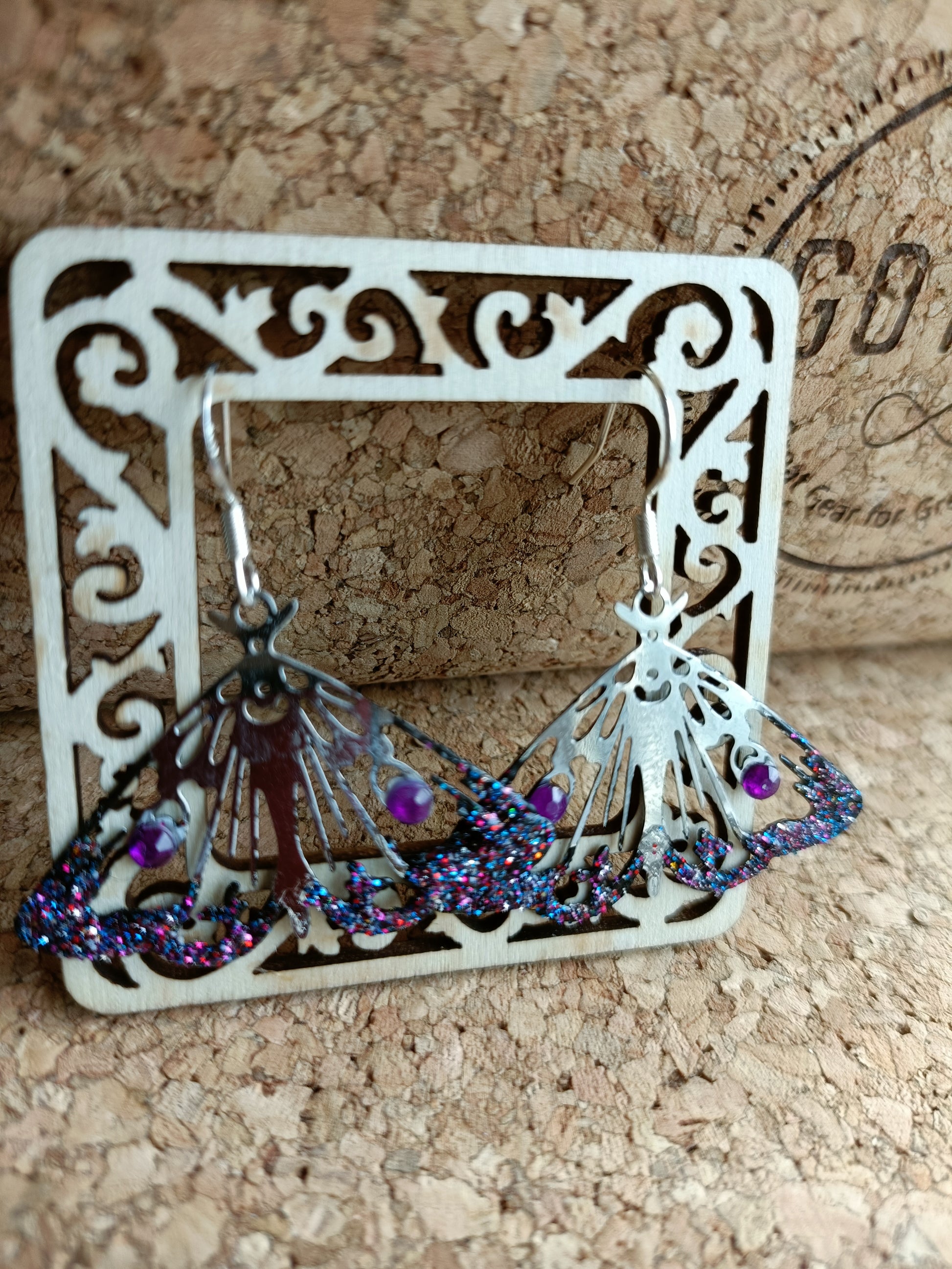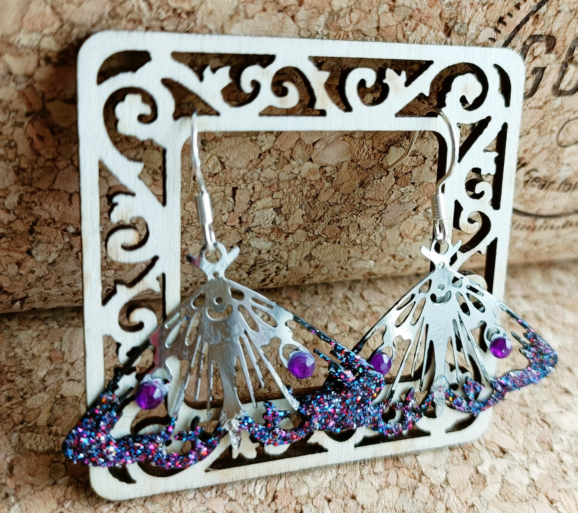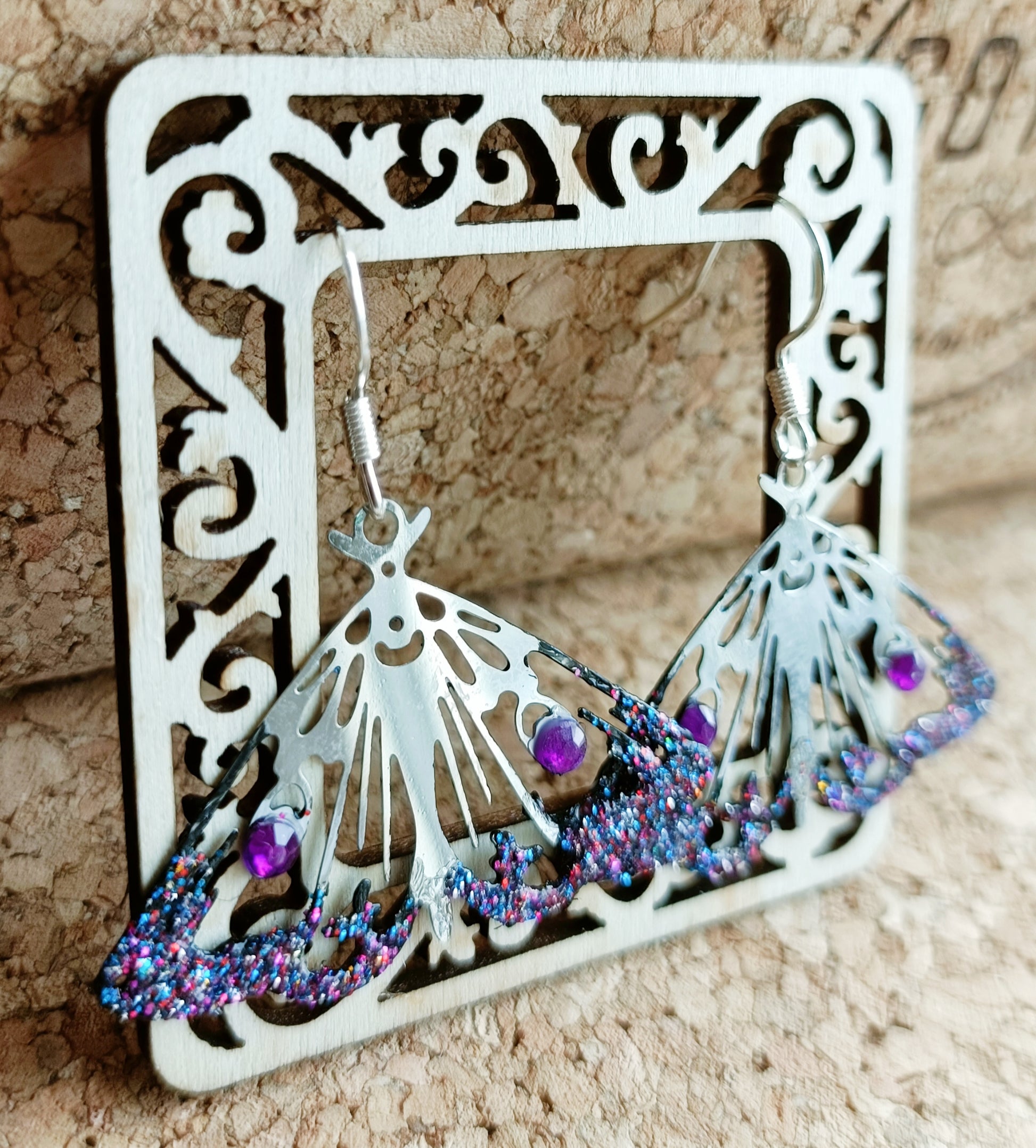 Add a touch of mystery and whimsy with these Purple Moth Earrings, featuring intricate steel relief designs and beautifully hand-painted details. These earrings are perfect for nature lovers, gothic fashion enthusiasts, and anyone who appreciates delicate, nature-inspired accessories.