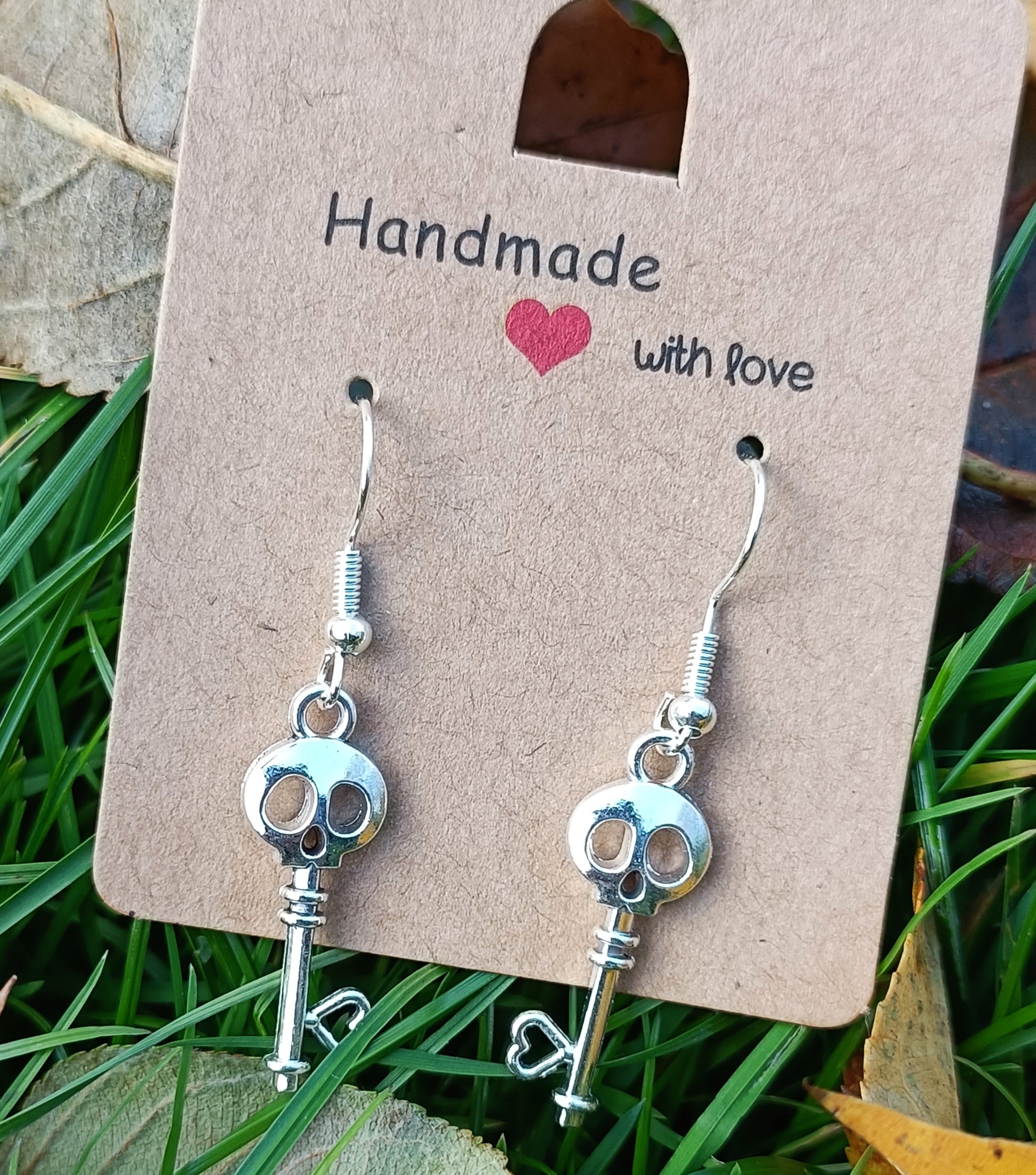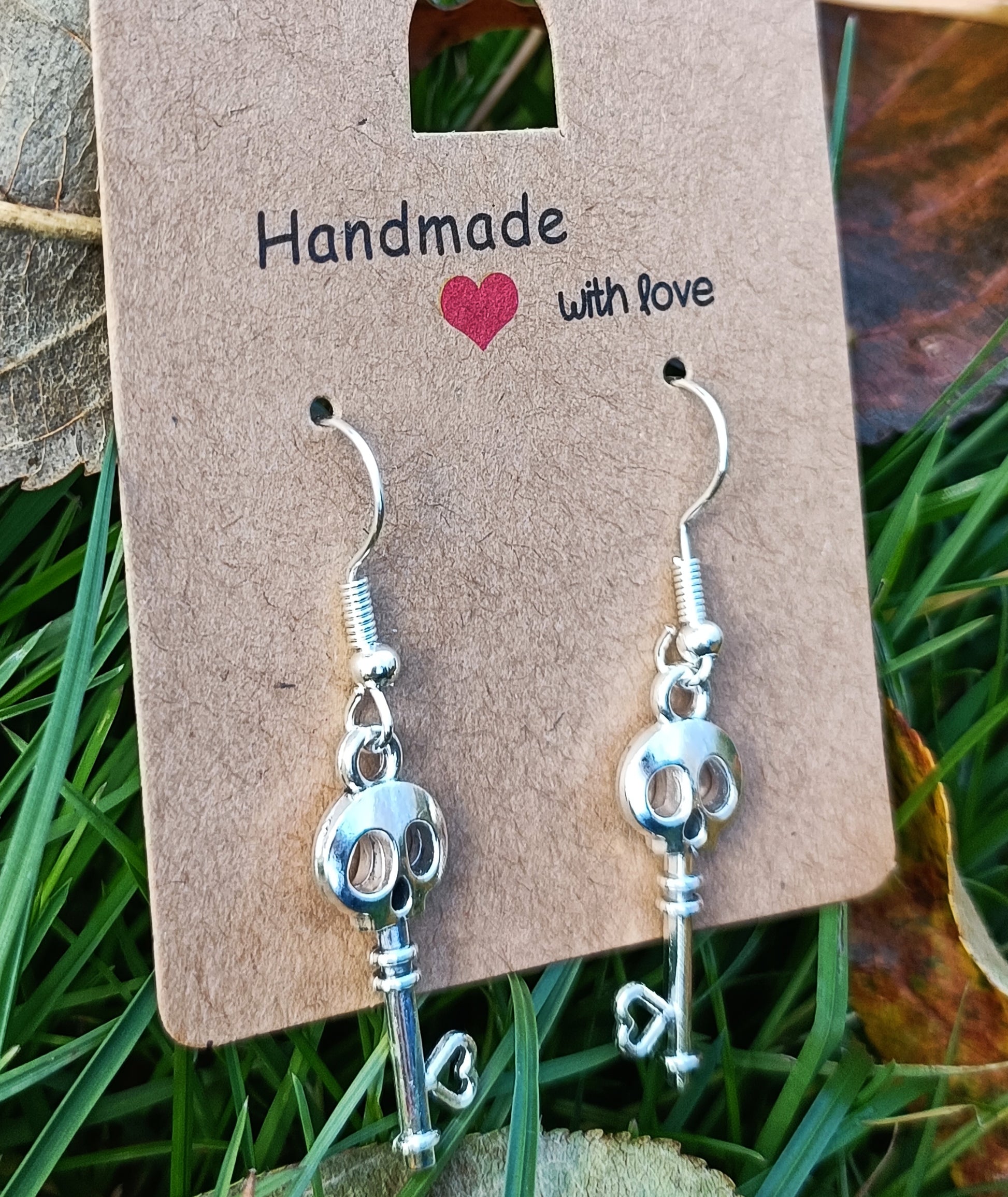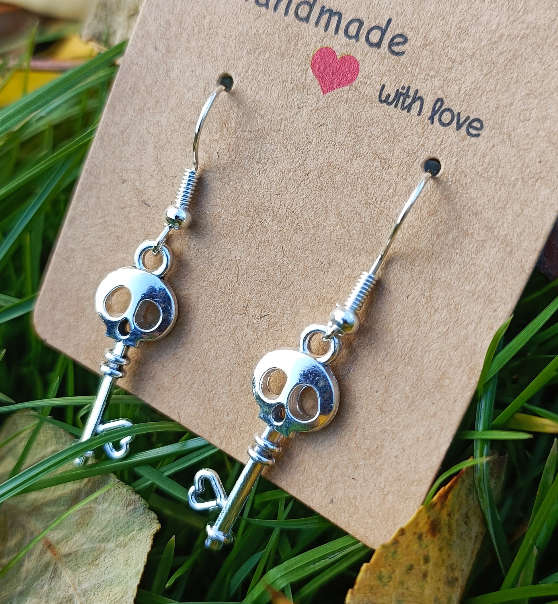 Unlock a world of elegance and mystery with these Skeleton Key Earrings, crafted from lightweight aluminum and suspended from durable steel hooks. The timeless skeleton key design symbolizes secrets, potential, and new beginnings, making these earrings a captivating accessory for those who appreciate unique and meaningful jewelry.